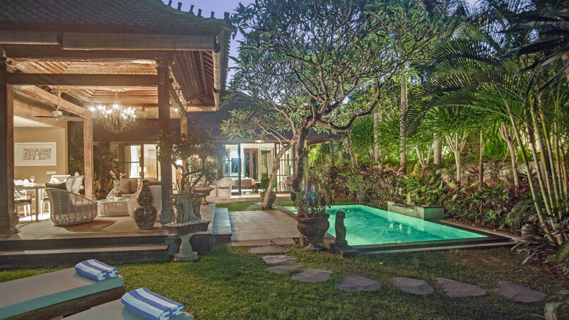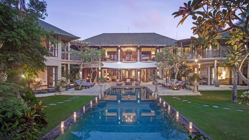 Avalon Estate is a sprawling property in the mesmerizing town of Canggu, which can be rented out as two separate villas or a six-bedroom holiday home perfect for large family gatherings or even a private party with 80 people at most. The idyllic resort is flooded with natural, tropical foliage including trees, plants, and sweet-smelling flowers. With two living pavilions, and two swimming pools, there is a lot of activities going around in the estate suitable for adults and kids alike.
