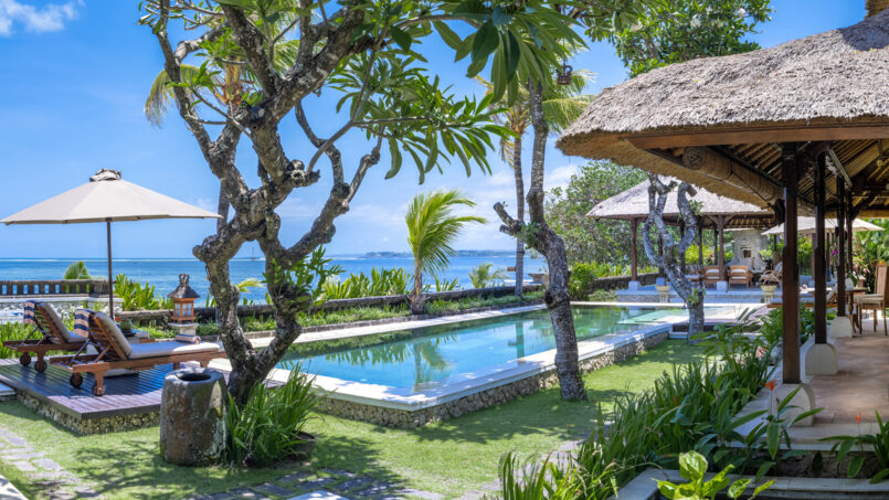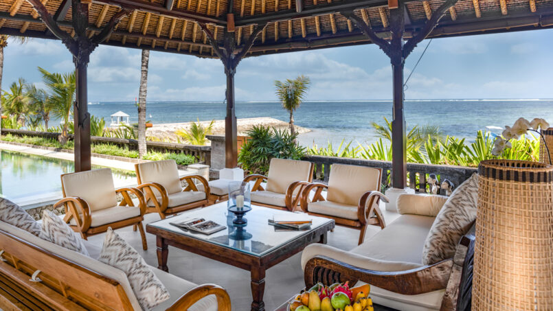 This is a beachfront villa which is situated in Sanur in Bali and enjoys a spectacular view of the ocean. It has the nicest Balinese exteriors and stunning rustic interiors that allow the five bedroomed villa to serve most comfortably large gartering of families and friends. The presence of the spacious living areas and the individual thatched-roof buildings found around this villa are ideal for the guests who are looking to get Balinese inspired contemporary vacation home.