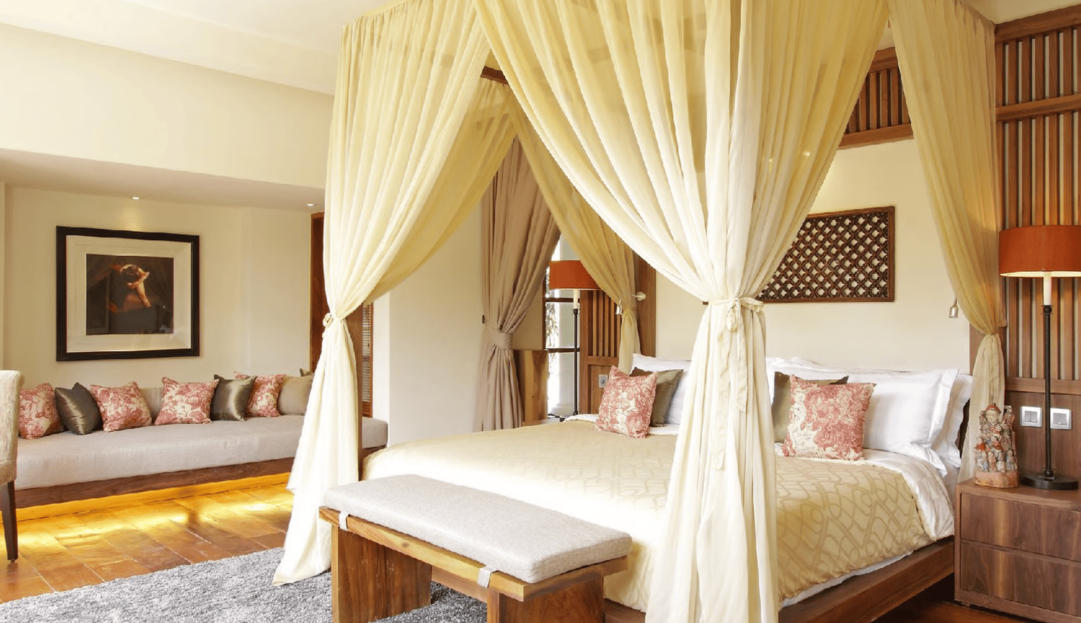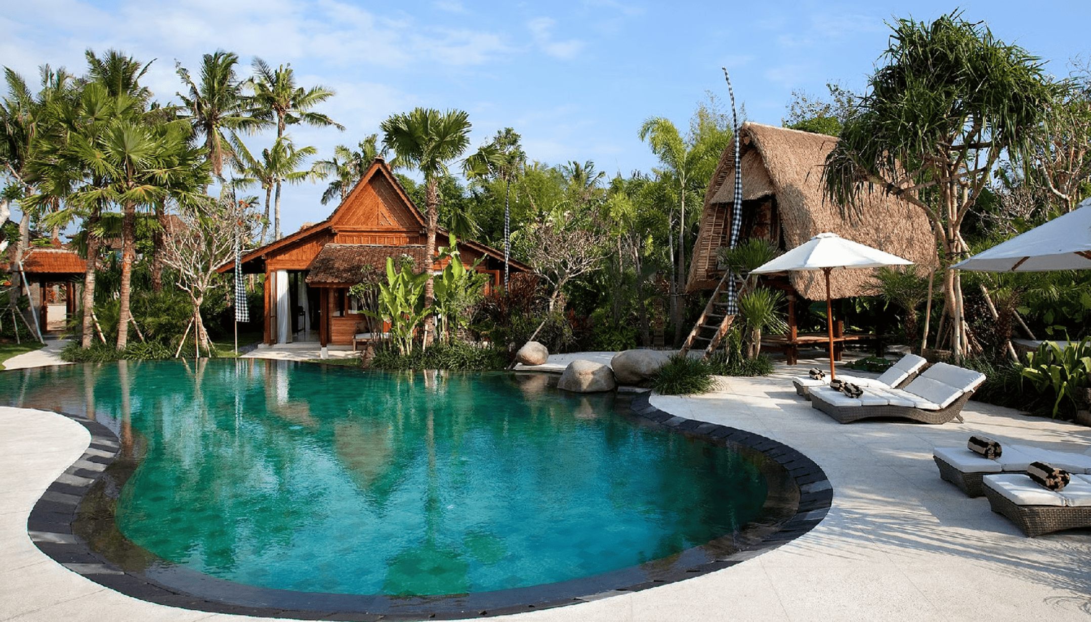 Dea Villas is one of the largest villa complexes in Canggu, spread out in a grand estate with 4 separate luxury villas – Villa Radha, Villa Amy, Villa Sati, and Villa Saraswati. Villa Radha is designed especially for honeymoon couples, a one bedroom villa with a lovely romantic ambiance. Villa Amy has 3 bedrooms, and both other villas are larger with 4 bedrooms, targeting families and bigger groups. All the villas are wooden cottages nestled among many tropical trees. Located less than 2km away from the nearest beach, this relaxing tropical oasis is ideal for anybody who wants an utterly relaxing getaway where they have easy access to a beach, and yet get to be away from the busy bustle of the highly touristic places.