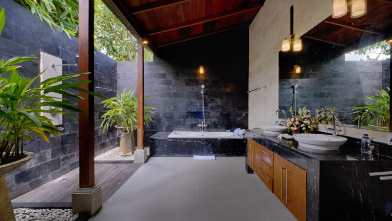 Immerse yourself in the tropical paradise with our infinity pool, perfect for sun-soaked days, and unwind in the lush garden that surrounds the villa. The open-plan living area seamlessly blends indoor and outdoor spaces, providing the ideal setting for gatherings or quiet moments of reflection.