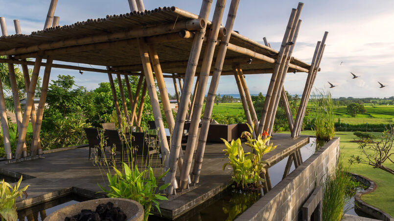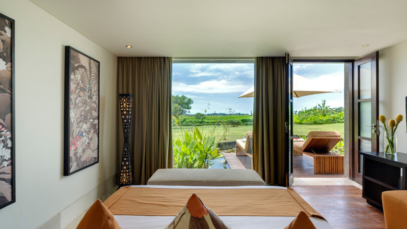 Nestled among the peaceful and serene countryside of Bali, Villa Mandalay is one of the most coveted holiday havens in Canggu. It is a 7 bedroom villa that is perched on an elevated setting next to a vast rice field that gives a beautiful panoramic view of the surroundings. The design and the architecture of this property are creative and elegant. With an infinity pool, open-air dining areas, sun loungers, beautiful ponds, and spa facilities, Villa Mandalay the idyllic tropical vacation getaway in your dreams. Only 3km away from the beach, this lovely retreat places you right among the best of everything that Bali has to offer you, with a friendly and dedicated staff who will go out of their way to ensure that the stay in their property makes for an absolutely unforgettable memory.