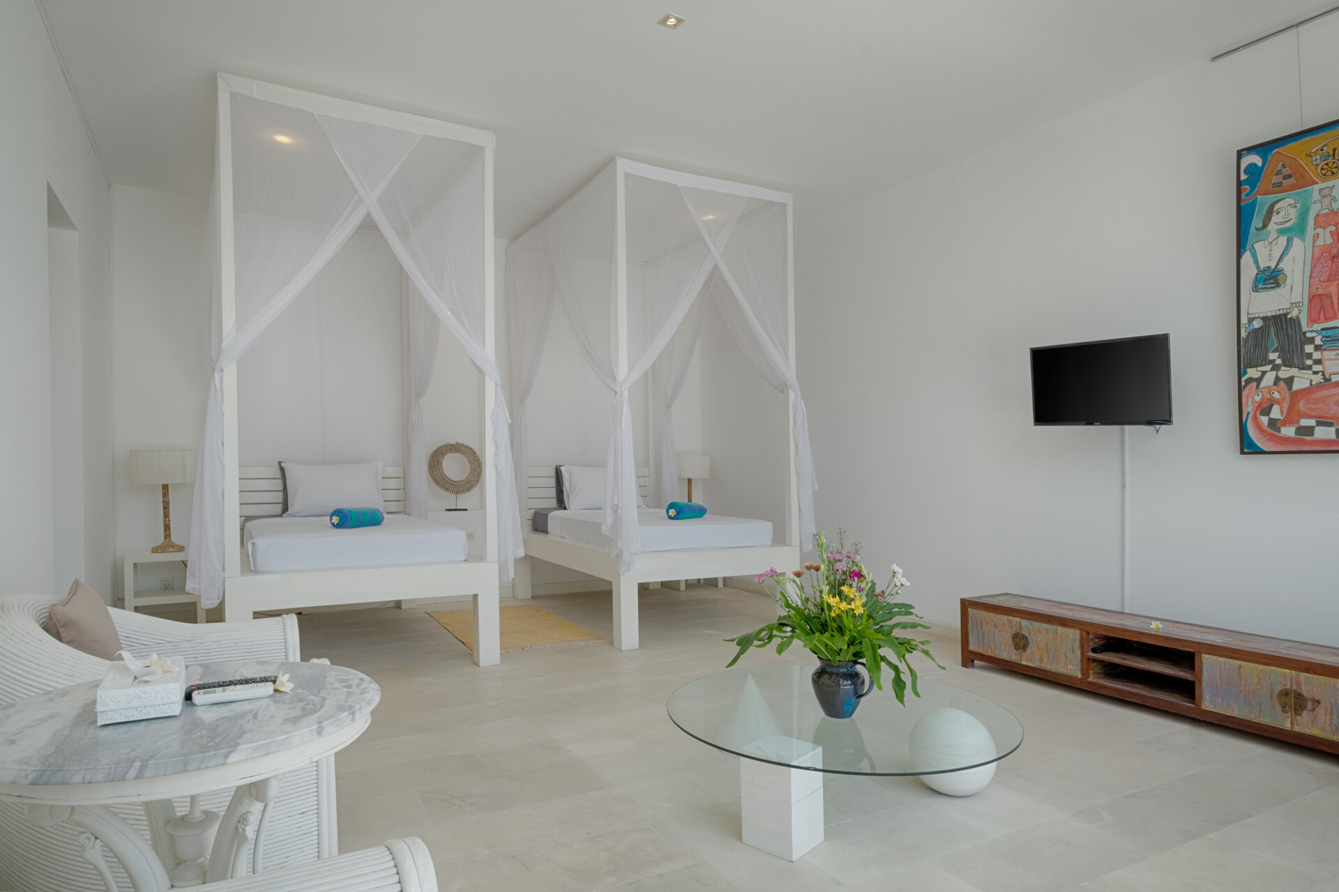 Villa Putih Satu is a two-storey vacation residence that embodies elegance in design and excellence in layout. As its name denotes – Putih being the Indonesian word for white – the villa has a classy white color scheme that artistically contrasts with the predominantly stone exteriors and fixtures as well as with the carefully chosen stylish appointments and premium recreational amenities. Although the villa’s interiors are furnished and adorned with mostly contemporary appointments and art pieces, there are still traditional and local accents that, overall, still make Villa Putih Satu distinctively Balinese.