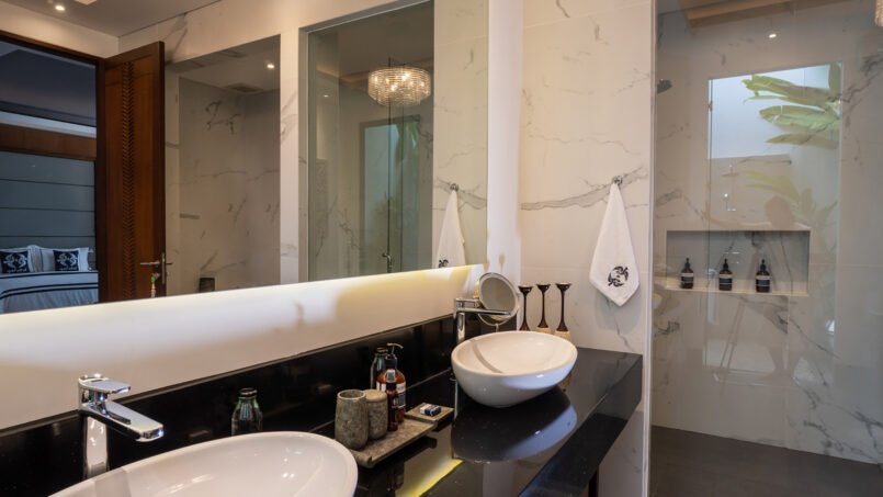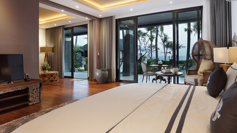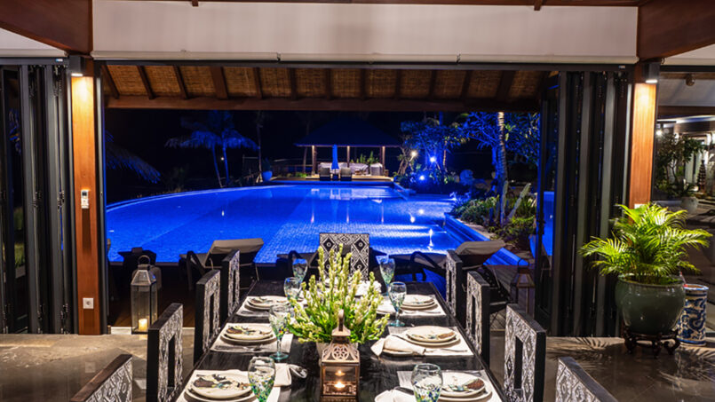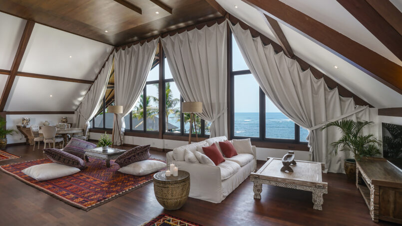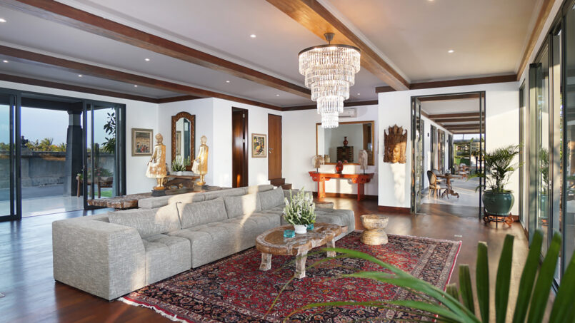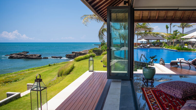 Built for large family vacations, the living pavilion at the south end of the pool has glass doors that fold back to create a seamless indoor-outdoor experience. Meanwhile, a pool balé at the northern end is yet another perfect spot for you to relax and soak up the views. Should you manage to tear yourself away from the villa, just go wandering about and discover rice fields, coconut groves and shaded lanes lined with banana groves and mango trees, as well as ornate sea temples that can be reached by a clifftop path.