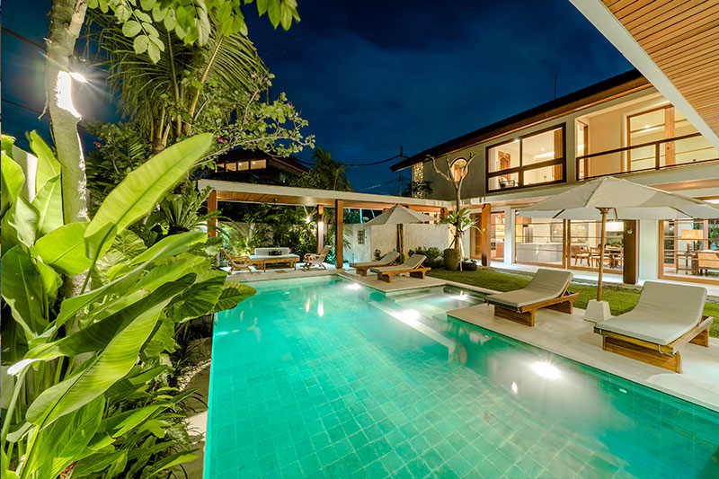 Villa Uma Berawa is located in Canggu’s Berawa neighborhood, 2.9 kilometres from Batu Bolong Beach and 2.6 km from Vue Beach Club. The property is a spectacular double-storey designer villa, nestled between Seminyak and Canggu featuring five lovely bedrooms, a refreshing minimalist outdoor swimming pool, a surrounding lush garden with and six bathrooms. The villa merges modern contemporary architecture with warm tropical colors, inspired by the relaxing charm of Bali’s laid back beach life.