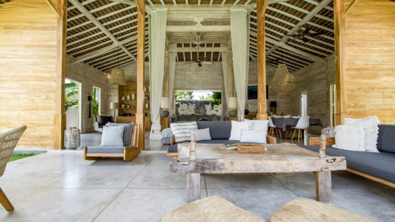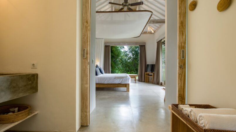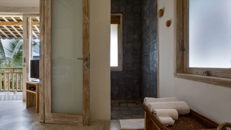 The four guest bedrooms are housed in a separate double story pavilion and two of the rooms are on the second floor. Each room is beautifully decorated with a blend of traditional and modern décor pieces. All rooms feature large king sized beds with crisp white bedding, air conditioners, beautiful furniture, flat screen TVs and safety deposit boxes. The en suite bathrooms of all rooms sport large walk in showers, toilets, wardrobes and his and hers sinks. The two rooms on the second floor open to gorgeous balconies overlooking the lush tropical view. The downstairs rooms boast views of the swimming pool and garden.
