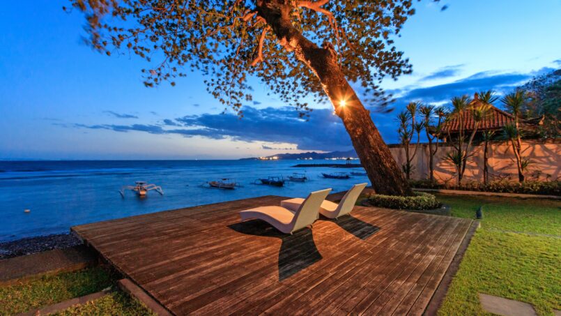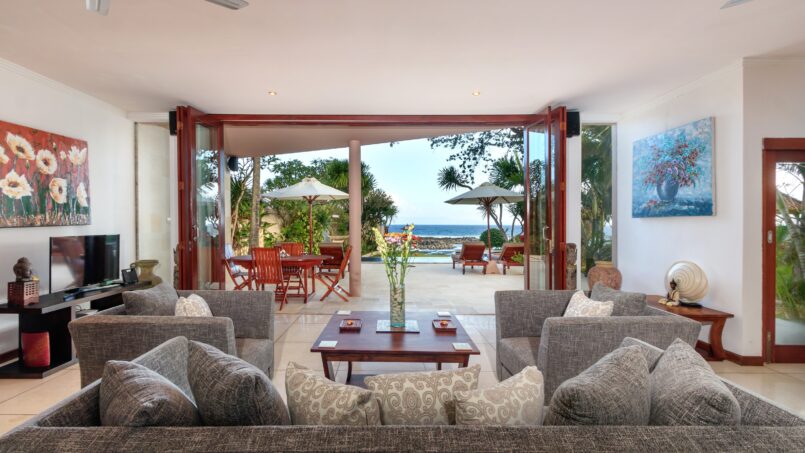 Villa Pantai Candidasa is what tropical vacation dreams are made of – waking up to sunshine and the sea right before your eyes. This is a small and intimate 2-bedroom villa that offers you a cozy and home-like experience at an extremely affordable price. The villa itself is quite compact with a sleek and minimal interior. It is the oceanfront location of the villa that multiplies the value of this property by many times. From Candidasa in East Bali, which is known to be a great alternative to loud and buzzing towns of Kuta and Sanur, you can get a perfect view of the ocean, Nusa Penida island and the mountains at a distance without the noise and bustle. Villa Pantai Candidasa is beautifully designed, comfortable, affordable and located in a stunning location – what else can you ask for!