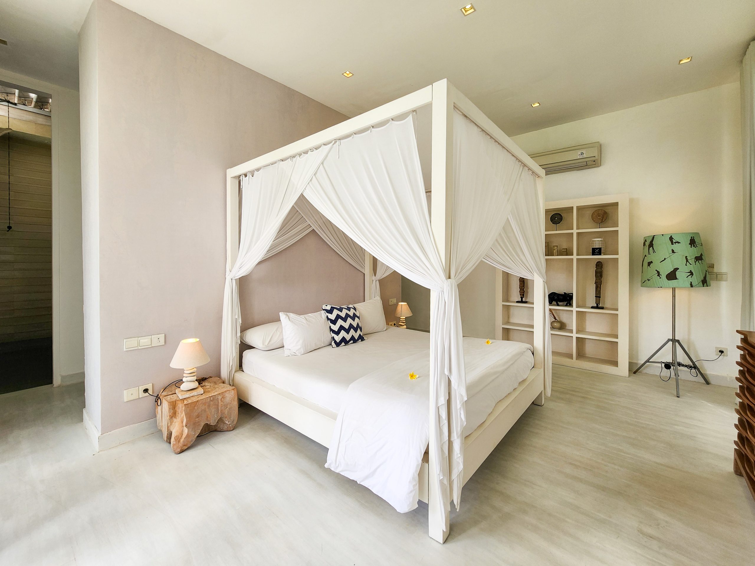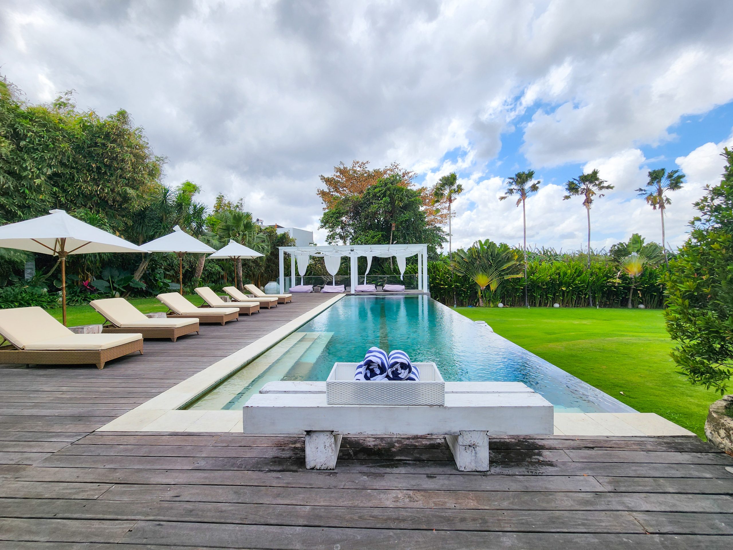Pure luxury hidden away in rural Canggu, Pure Villa is a holiday oasis to experience the best of Bali. The villa follows a stunning white theme to further exemplify the name of the property. From the bedrooms, the indoor living areas to the many sunbeds placed on the deck of the large swimming pool, you will be greeted with pure elegance and serenity whenever you look in this villa. All the 6 bedrooms in the villa have been given great attention to detail when decorating. The garden and also the bedrooms have artistically placed lamps to further elevate the soothing ambiance all around. From impeccably sleek and crisp betting to the natural white marbles placed on the floor of the bathrooms, you will enjoy an exclusive sense of luxury when during your stay in this property.