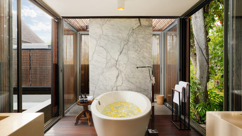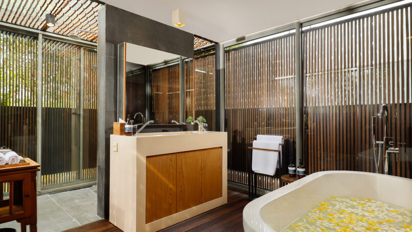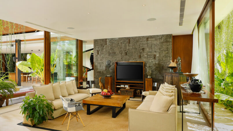 Svarga means “heaven” to the Hindus. Villa Svarga will certainly be heaven for those seeking peace, tranquility, and solitude. You will feel this from the moment you step into the estate. This 5-bedroom holiday villa in Sanur will also be a great choice for those looking for a luxury vacation in a premium location. A world of opulence awaits you. Every need and comfort of the guests is going to be looked after here. The house has a personal guest assistant, a team of housekeepers, a gardener, and security personnel. The villa manager will oversee the work and ensure that you have the best of everything. Simply can sit back, relax, and enjoy your holiday.