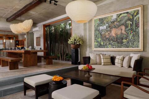 Just a short walk from Pererenan Beach, Villa Uma Santai is an incredibly modern and beautiful hideaway where you can have a magical island getaway. Impeccably designed with a luxury, clean style, it is an idyllic space to spend quality time with your friends and family.