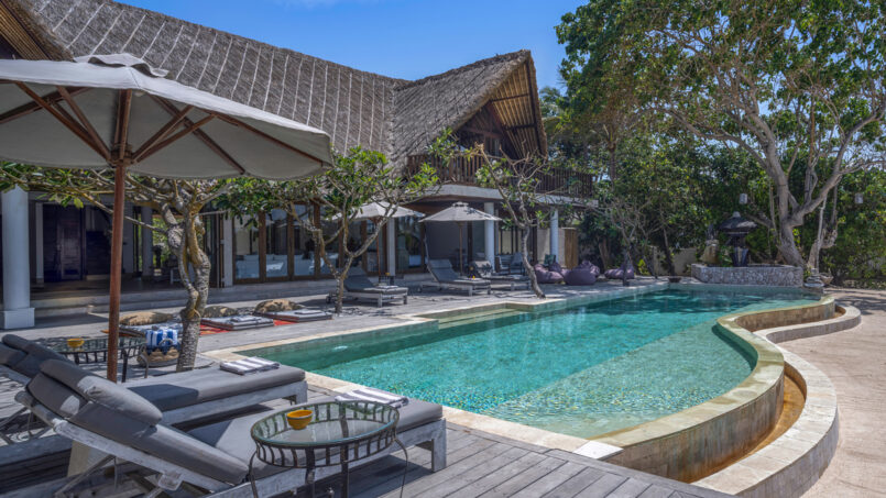 Nusa Lembongan is one of the three sister islands on the southeast coast of Bali, encircled by water and sandy beaches. Villa Voyage is a paradise set amidst these same waters overlooking the ocean and directly connected to the beach from its back. The five-bedroom retreat resembles a safari or a similar travel-style décor, transporting you to a new location each time you wake up in the morning. With a luxurious and abundant living situation that gives you a complete transformation from the usual busy city life, the villa is perfect for those looking for some time out!