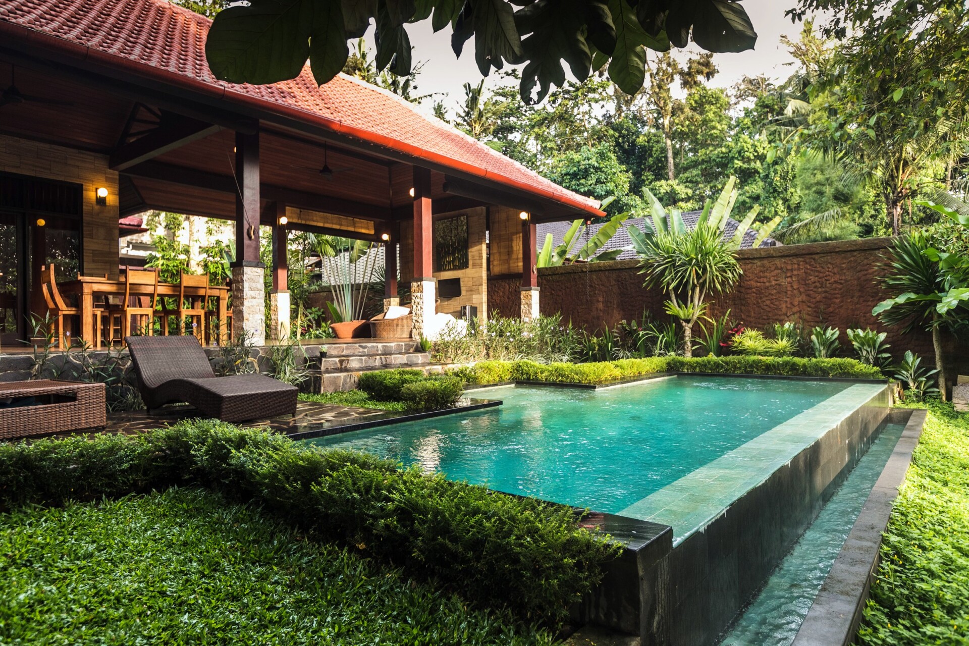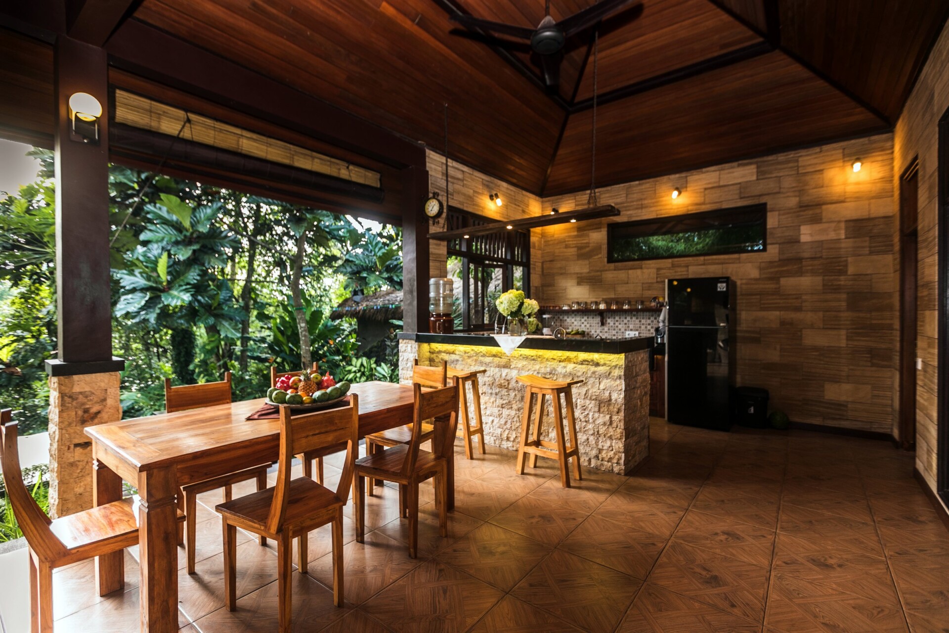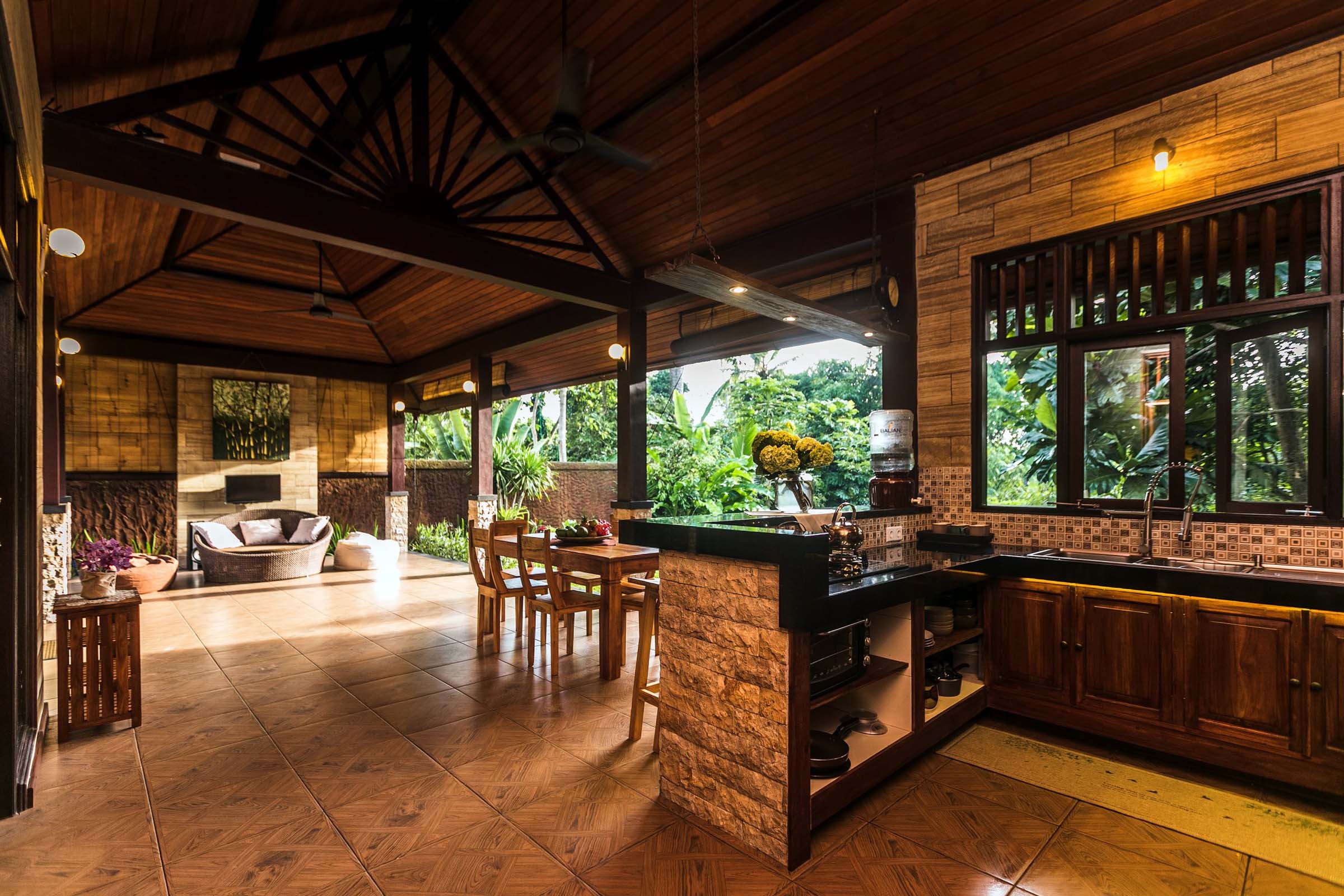 Spend your evenings in the middle of nature engrossed with nothing but the company of your loved ones at Villa Apriori. Nestled in the lush landscape of Sayan, Ubud, the villa houses two bedrooms, an open concept living area and a view that surpasses your imagination. The property is essentially a jungle villa as it sees acres of forests with verdant tropical trees and plants. This beautiful setup is the perfect way to get away for a while, to a place where you can rest and relax knowing that nothing will disturb your peace.