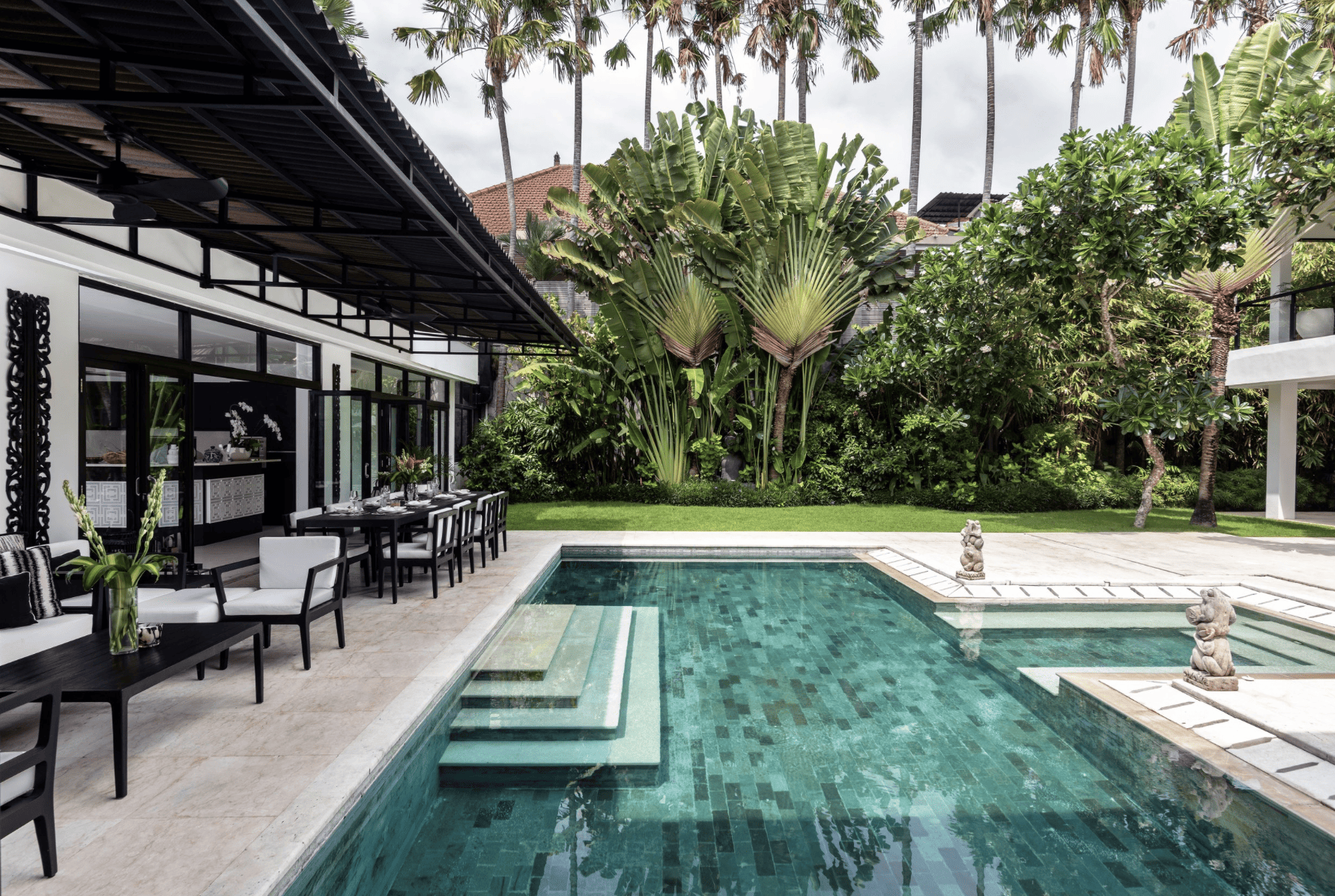 Complete with two turquoise swimming pools, a gym, a wine cellar and a team of staff, the two self-sufficient houses at Villa Ayana Manis offer the perfect getaway for an extended family or large group of friends looking to leave Bali with not just souvenirs, but priceless memories. Relax inside your newly renovated home, which is designed in a contemporary minimalist style, or explore the pristine beaches within walking distance of the villa: there is truly no end to the relaxation and rejuvenation that you can experience at this modern mansion located on the tropical paradise of Bali.