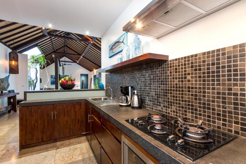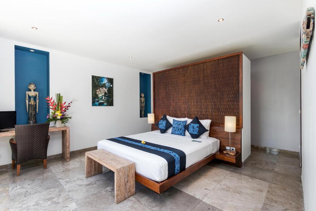 An elegant azure oasis tucked away in a quiet and beautiful part of Seminyak, Villa Anjali Blue is a 4-bedroom villa that offers you a comfortable stay at an affordable price. Designed by a renowned French architect, Villa Anjali Blue is the perfect marriage of Indonesian and French design. The decorations in the villa will take you through a journey of traditional Balinese art fused with contemporary European elements, making your stay comfortable and quite pleasing at the same time. As you relax next to the swimming pool, you will be able to take in the view of the perfectly landscaped garden that matches the sleek vibes of the villa interior. The friendly staff of the property will further ensure that you have the time of your life during your stay.