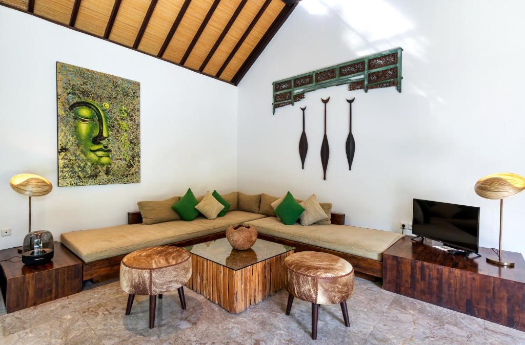With a name that gives the meaning the “divine offering”, Villa Anjali Green is a French-Indonesian style villa located in the heart of Seminyak, Bali. The vibrant ambiance of the villa and the vividly green garden is the perfect little affordable holiday residence for you in this popular resort town of Bali. The 8-meter swimming pool effortlessly blends into the surrounding tropical garden. This property is designed to be greatly child friendly, and the well-appointed vintage furniture and decorations further adds to the value. With 2 comfortable bedrooms, this is well-suited for couples and small families on their tropical vacation in Bali.