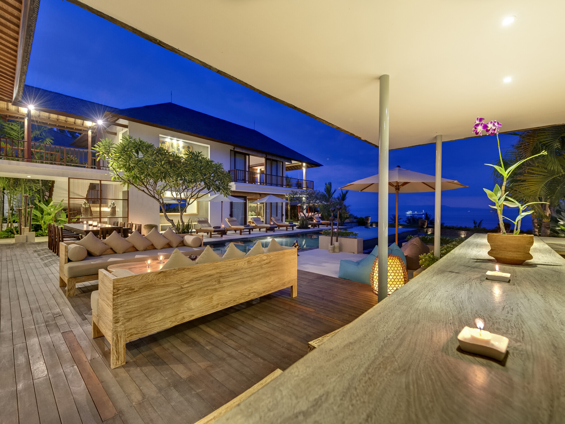Villa Asada is a luxurious holiday haven nestled atop a cliff overlooking splendid views of across Amuk Bay and Nusa Penida Island in Candidasa. Designed with a traditional flair and yet retaining its modern and contemporary stylistics for a comfortable stay, the villa caters to all your needs effectively. An 18-metre infinity swimming pool is found amidst verdant gardens, an alfresco bar, a terrace equipped with outdoor dining, and plenty of amenities ensure that your stay is a memorable one.