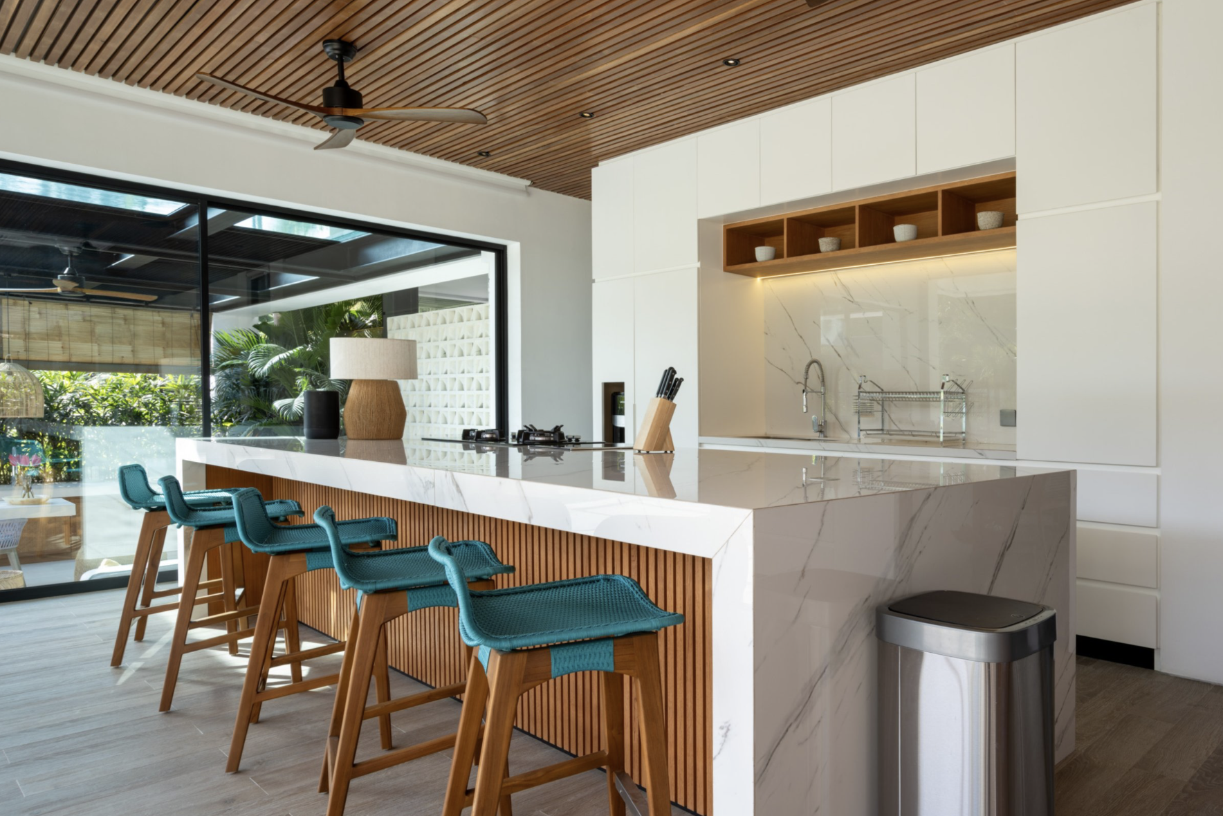 Bordered by nature at every turn, this magnificent five-bedroom mansion is the holiday home you’ve always dreamed of. It’s mid-century chic, with all of its capaciousness and elegance and can host up to 10 guests. Enjoy open spaces, sun-kissed poolside decks and a seamless blend of the interior with the outdoors.