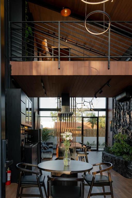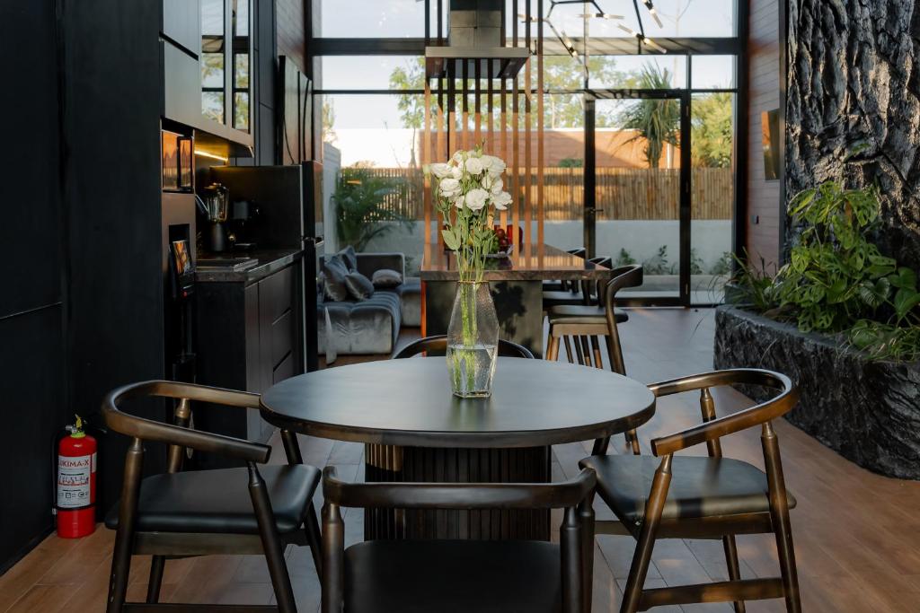 Each villa features a private terrace overlooking the pool, a comfortable seating area, flat-screen TV, and a fully equipped kitchen with refrigerator and microwave. The en-suite bathrooms are fitted with a bidet and complimentary amenities for your convenience. Every unit also includes a private patio with tranquil garden views, creating a serene retreat for relaxation.