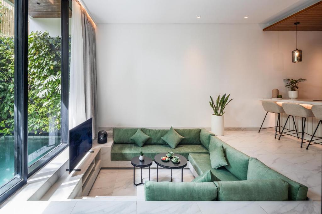 Beautiful, spacious Villa. Our family of 5 loved our stay there. So peaceful and quiet but still in the heart of Semenyak and close to amazing restaurants and shopping.Â