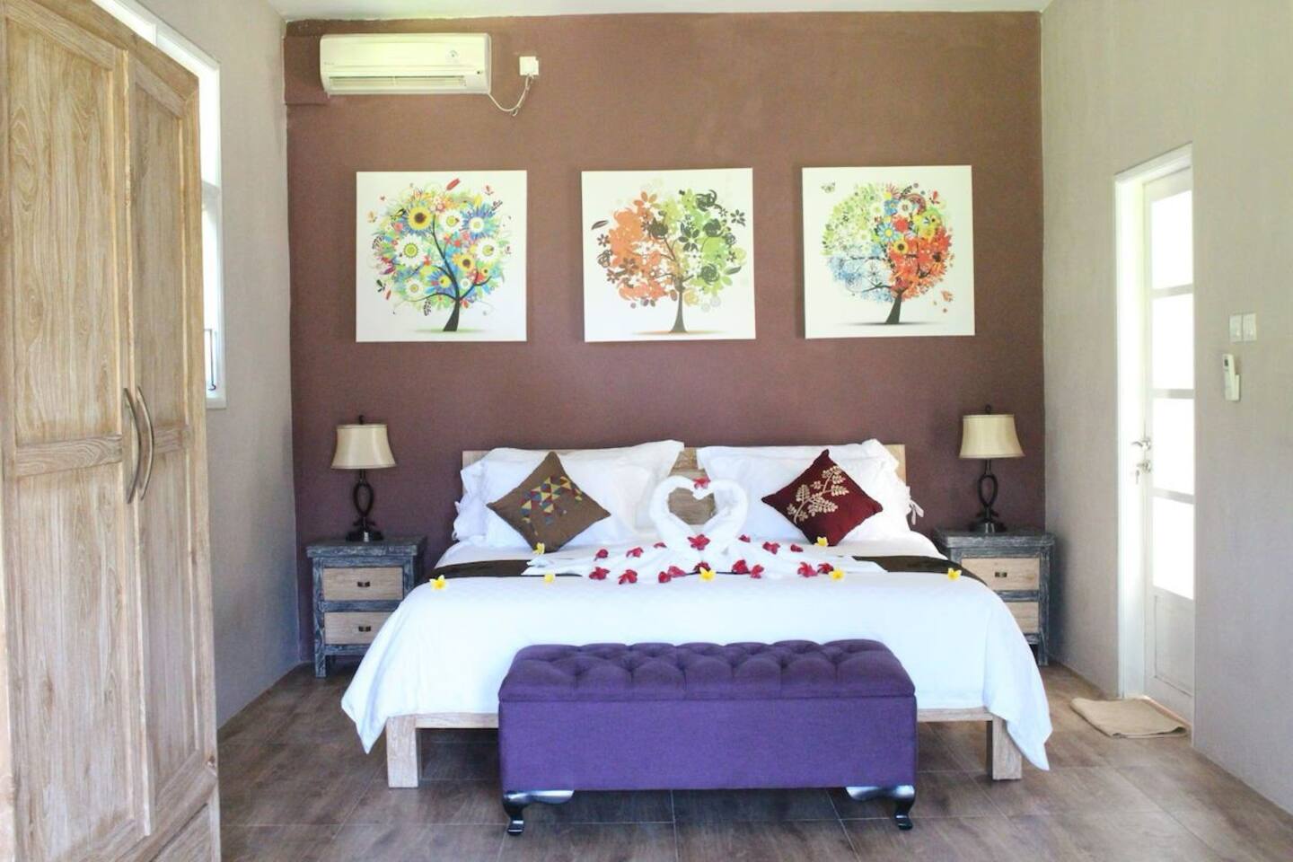 Welcome to Villa Gloria, a serene oasis nestled in the heart of Bali, Indonesia. This exquisite villa features 4 elegantly designed bedrooms, each offering a harmonious blend of modern comfort and traditional Balinese charm.