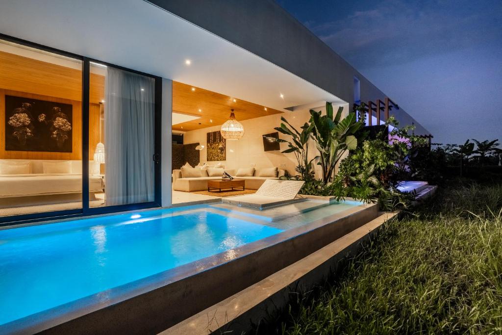 Situated just 3.9 km from the Blanco Museum, GREEN FLOW Ubud Villas II offers a serene retreat surrounded by lush greenery, featuring an inviting outdoor swimming pool, beautifully landscaped gardens, and elegant air-conditioned accommodations with private terraces and complimentary WiFi.