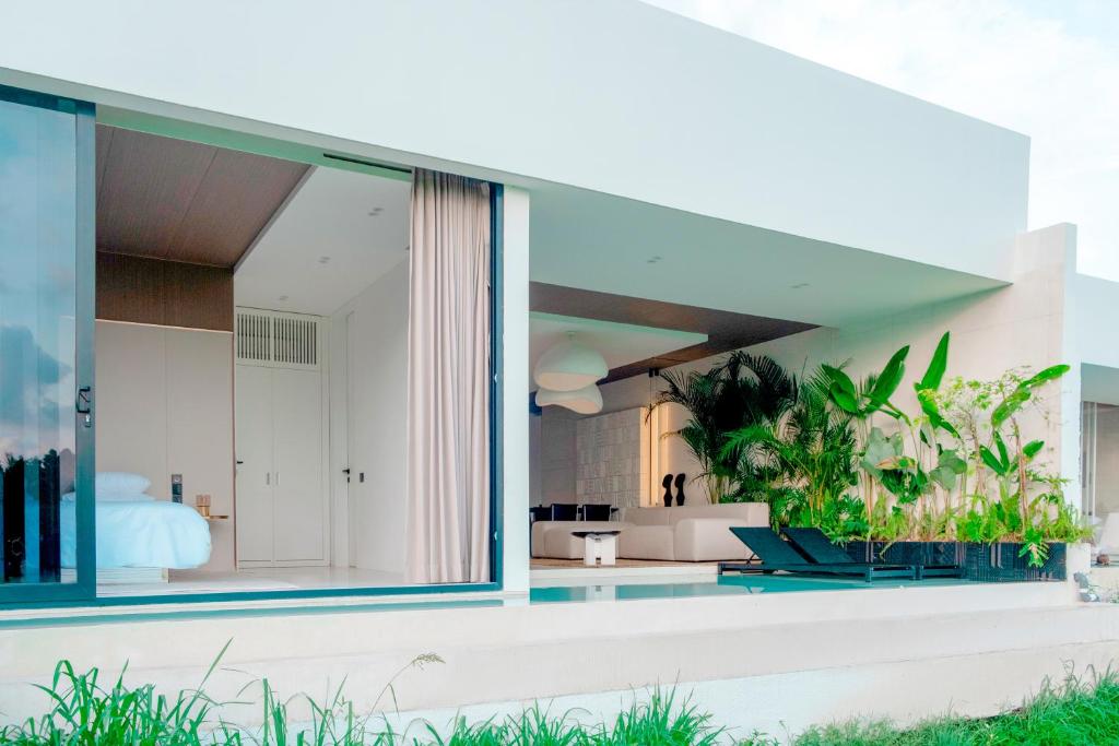 Each unit is designed with comfort and convenience in mind, showcasing serene pool views and equipped with a cozy seating area, a washing machine, and a fully appointed kitchen complete with a refrigerator and modern cooking facilities. The private bathrooms are fitted with complimentary toiletries and a hairdryer, ensuring a seamless and relaxing stay.