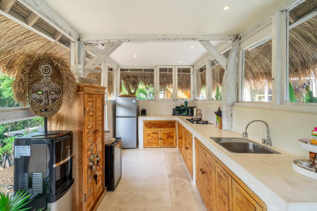 Each bungalow offers a terrace with pool views, a comfortable seating area, a flat-screen TV, and a fully equipped kitchen complete with a refrigerator and microwave. The private bathrooms are fitted with showers and complimentary toiletries. Additional amenities include a stovetop, toaster, coffee machine, and electric kettle for guests’ convenience.