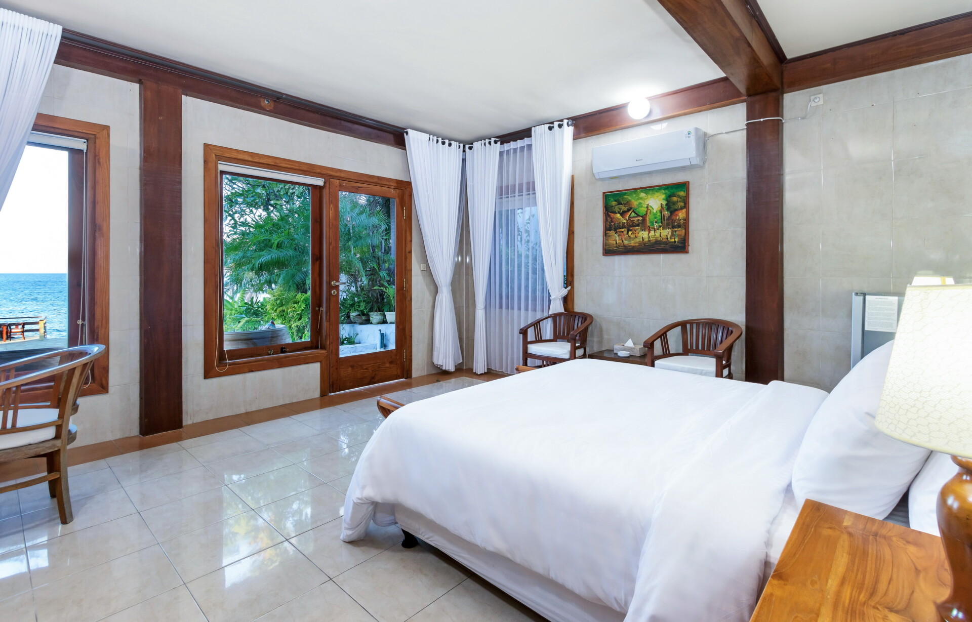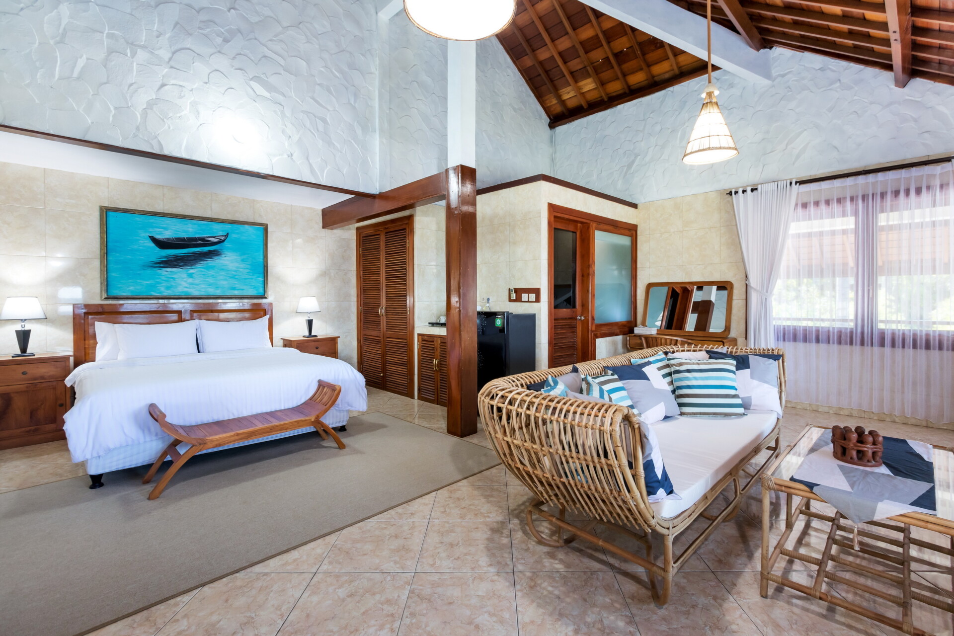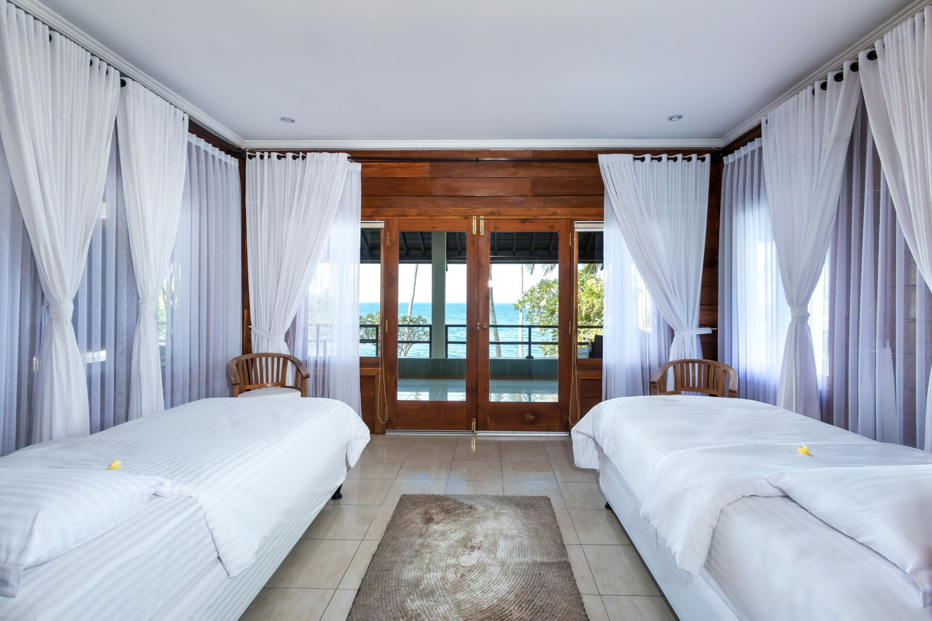 Nestled within the coastal town of Tulamben, Bal sits the luxurious Villa Kannahita and Kannandari , an exquisite twin villa that forms part of the extraordinary Kanna Seafront Estate. These twin properties boast an awe-inspiring and magnificent design that spans two stories allowing you to immerse in the untamed beauty of the surrounding areas as you gaze into the Bali Sea from the front of these homes . Its expansive interiors provide an abundance of space, ensuring a truly remarkable and delightful stay while the plethora of amenities and facilities will surely amaze you. Dive into the inviting outdoor lagoon pool , enveloped by the lush tropical surroundings . Unwind in the breathtakingly spacious garde . Relax and rejuvenate with the two living rooms at your disposal and not to mention, take in the 360 vistas all round from the outside.