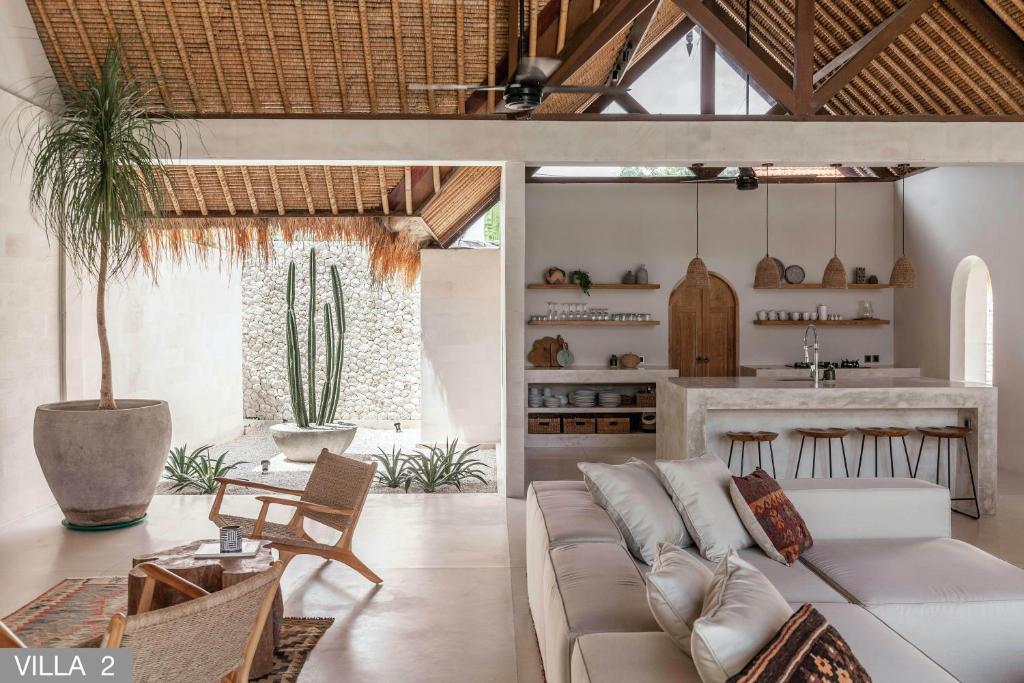 Each villa has its own pavilion offering spacious living space, air-conditioned king en-suite bedrooms, fully equipped kitchen, superb dining area and lush tropical gardens. The professional staff of 14, including overnight security, welcome guests with warm Balinese hospitality and ensure guests are fully serviced throughout their stay.