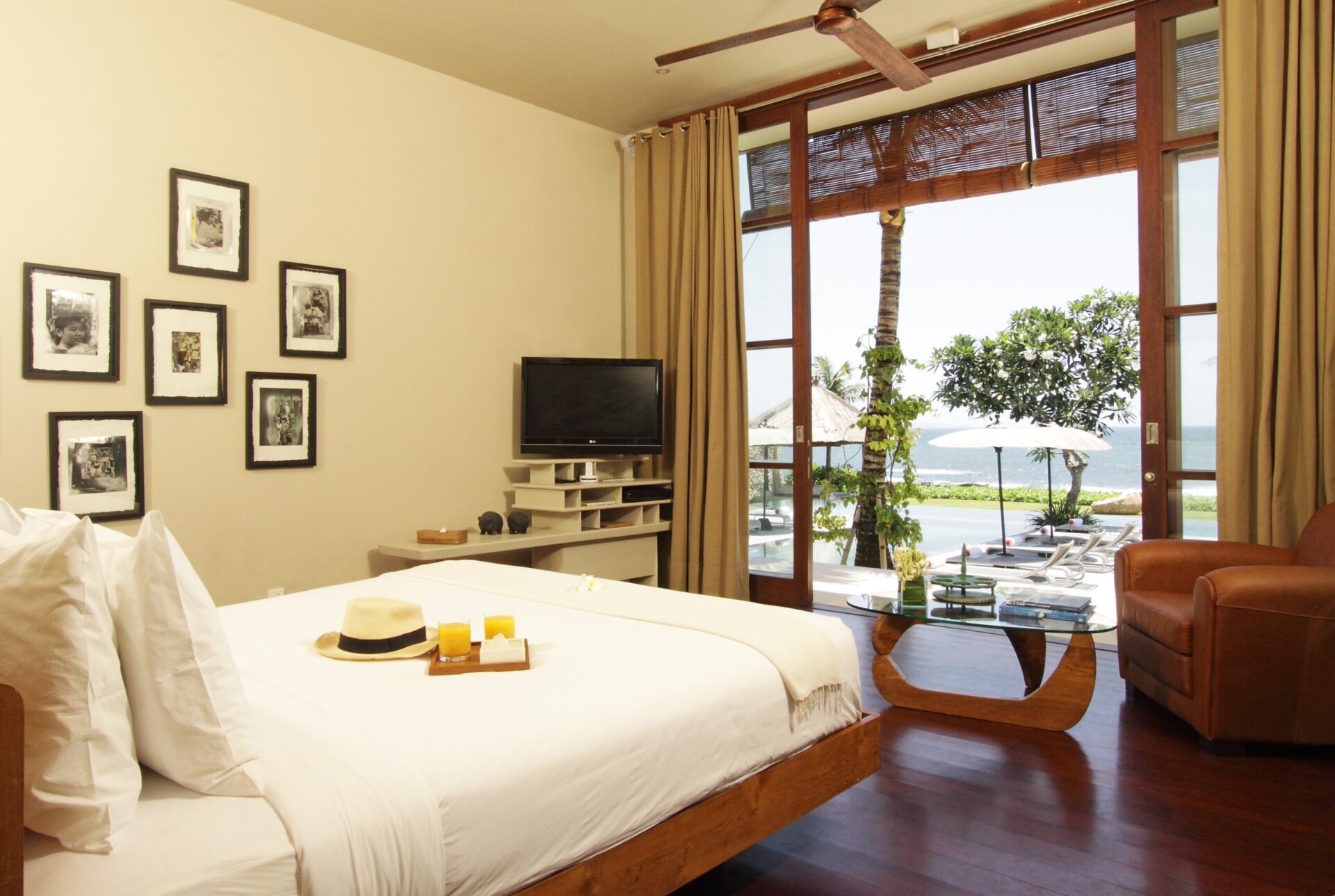 The epitome of luxurious beachfront living, Villa Melissa is considered to be one of the best beach villas in Canggu. Three of its 5 luxurious en-suite bedrooms overlook the ocean, a view that also greats you at the end of the long walkway entrance of the house as the scent of incense wafts in the air from the house temple.