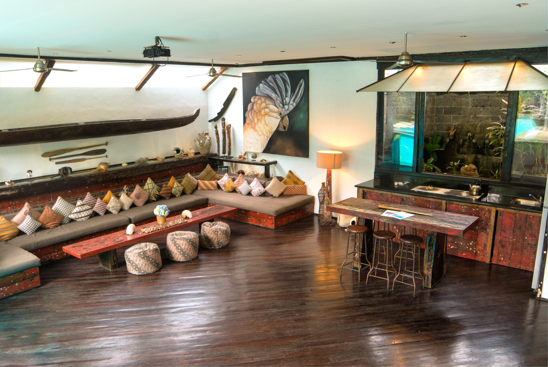 Constructed from recycled fishermen’s boats, the villa embodies rustic charm and timeless Balinese tradition. Its design mirrors that of a classic Balinese home, complete with traditional features, making it the perfect retreat for those craving an authentic and exotic escape.