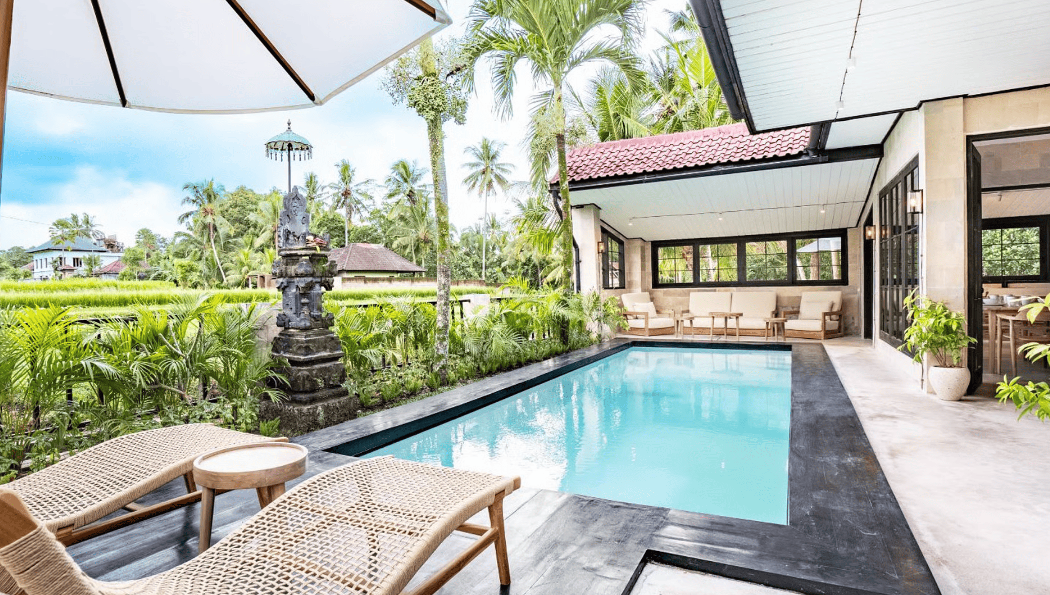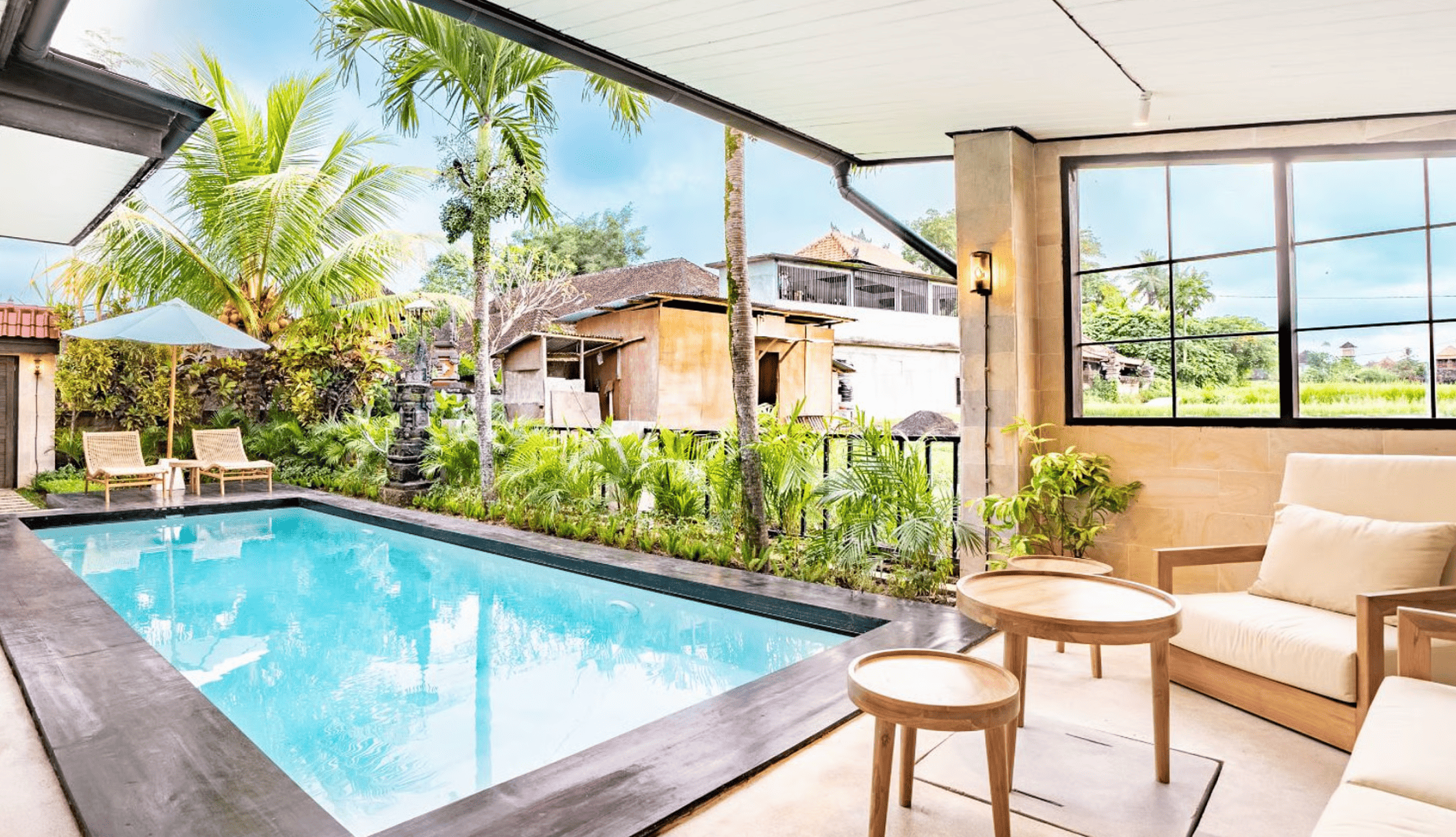 Nestled on the fringes of the vibrant Ubud town in Bali, Rumah Villa Ubud offers a serene tropical retreat that perfectly balances proximity to urban conveniences and the embrace of nature. Seamlessly blending modern elegance with Balinese charm, this cosy retreat features 2 luxurious bedrooms, a sun-kissed garden surrounded by lush greenery, enclosed living spaces, open lounges, ultra-modern kitchen and a beautiful private pool, making it an idyllic sanctuary for small families or group of friends seeking an island getaway (with a capacity of 4 persons). This property is conveniently located with easy access to many of Ubud’s attractions as well as a range of food and beverage and shopping options.
