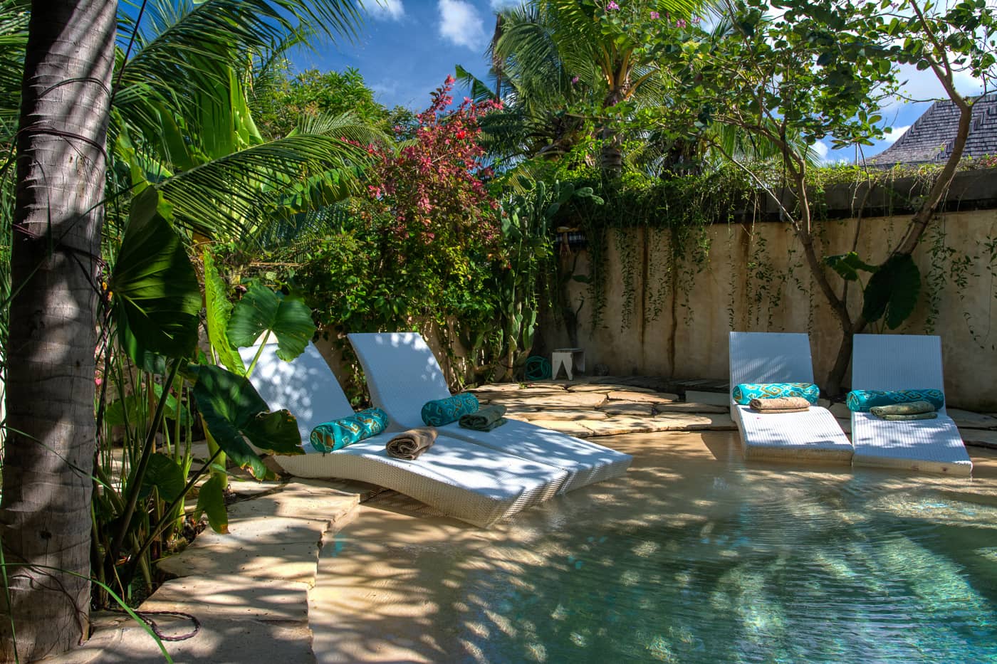 Set along a quiet street, within walking distance to Seminyak Beach and trendy Ku De Ta Beach Club lays Villa Sampan, a charming holiday rental perfect for families and couples. This 2-bedroom villa’s rustic and traditional charm is evident in its architecture and design, creating an atmosphere of authentic Balinese elegance. The Villa features two beautifully decorated bedrooms, a lagoon-like swimming pool, a cozy living area that is marked by old recycled fisher boat wood furniture and a sprawling tropical garden. This 250 square meter property offers utmost privacy and a comfortable retreat for your Bali holiday.