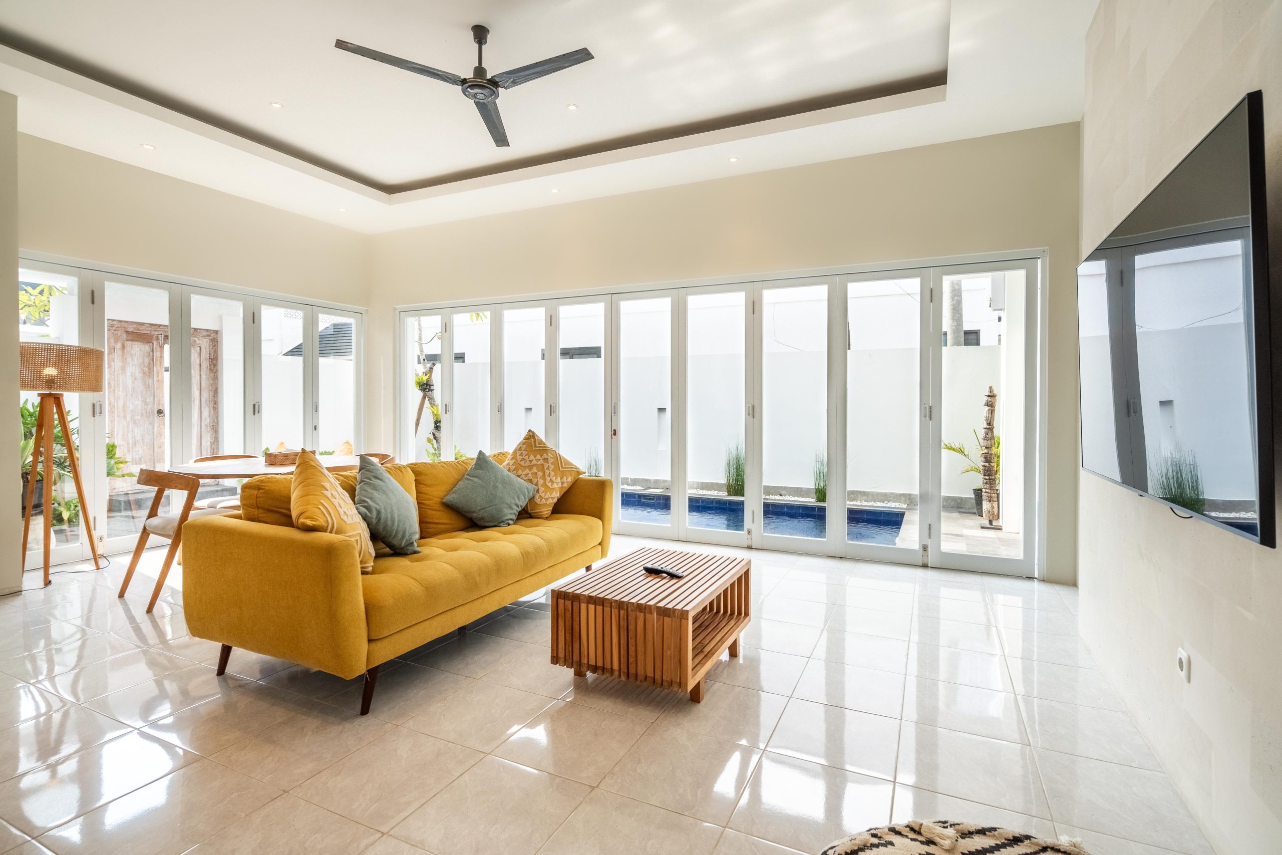 Beautiful, spacious Villa. Our family of 5 loved our stay there. So peaceful and quiet but still in the heart of Semenyak and close to amazing restaurants and shopping.Â
