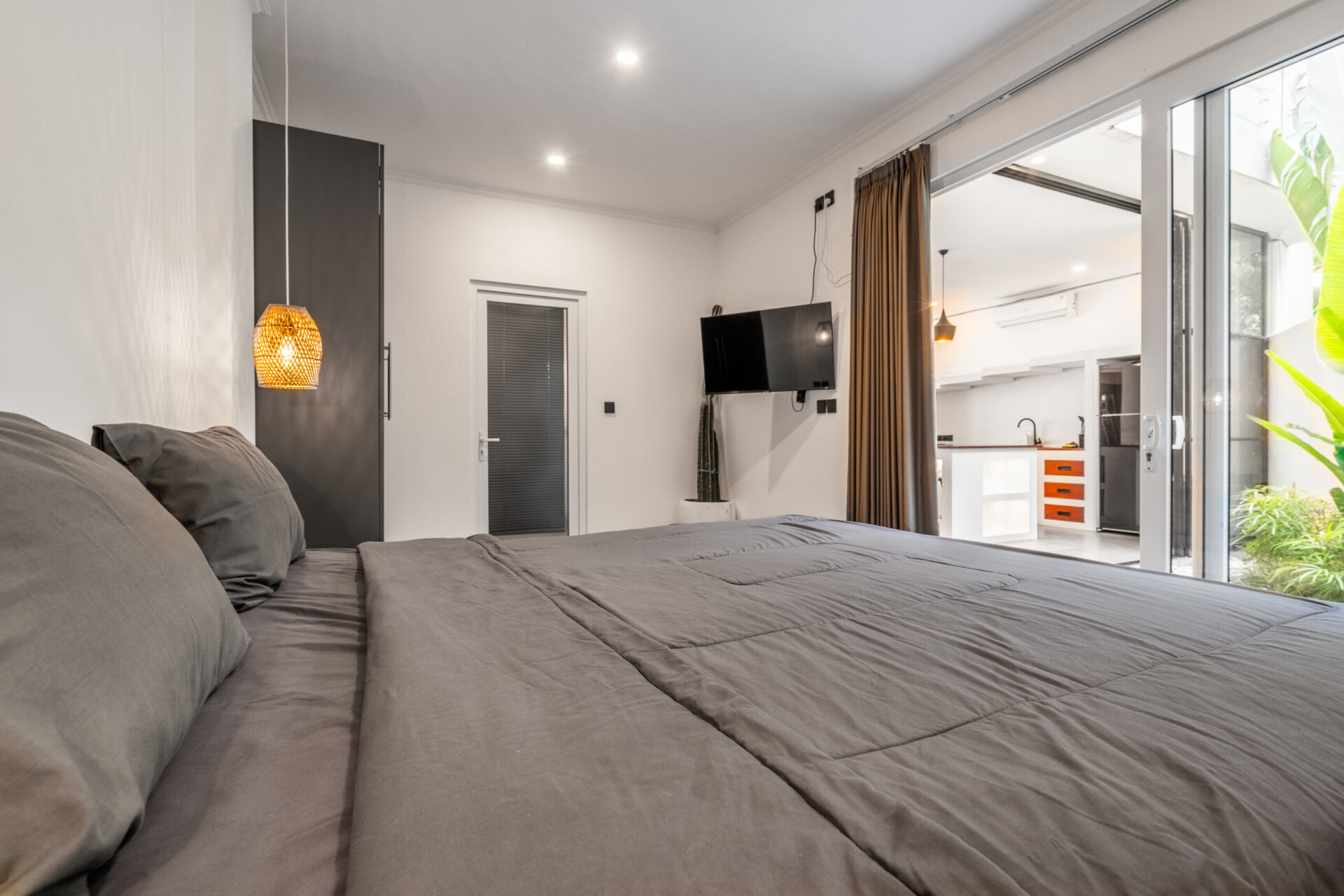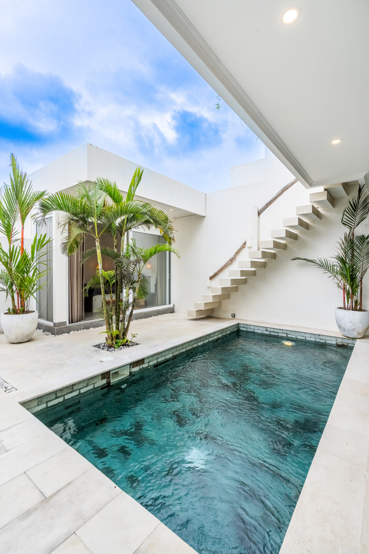 As you enter the Sunny Home poolfront villa for rent, you are immediately greeted by the gentle caress of tropical air, lush green gardens framing the way to your personal oasis.The architecture is a modern ode to simplicity and comfort; its two airy stories open gracefully onto a central courtyard where the centerpiece lies — a sparkling swimming pool whose cerulean waters invite you to cool off under Bali’s generous sun, or luxuriate on sun loungers shaded by rustling umbrellas. Renting this perfect villa for family and friends is the absolute best idea — your life becomes a real paradise, filled with days spent bathing in the sun and floating beneath a limitless sky, letting the world slip away.