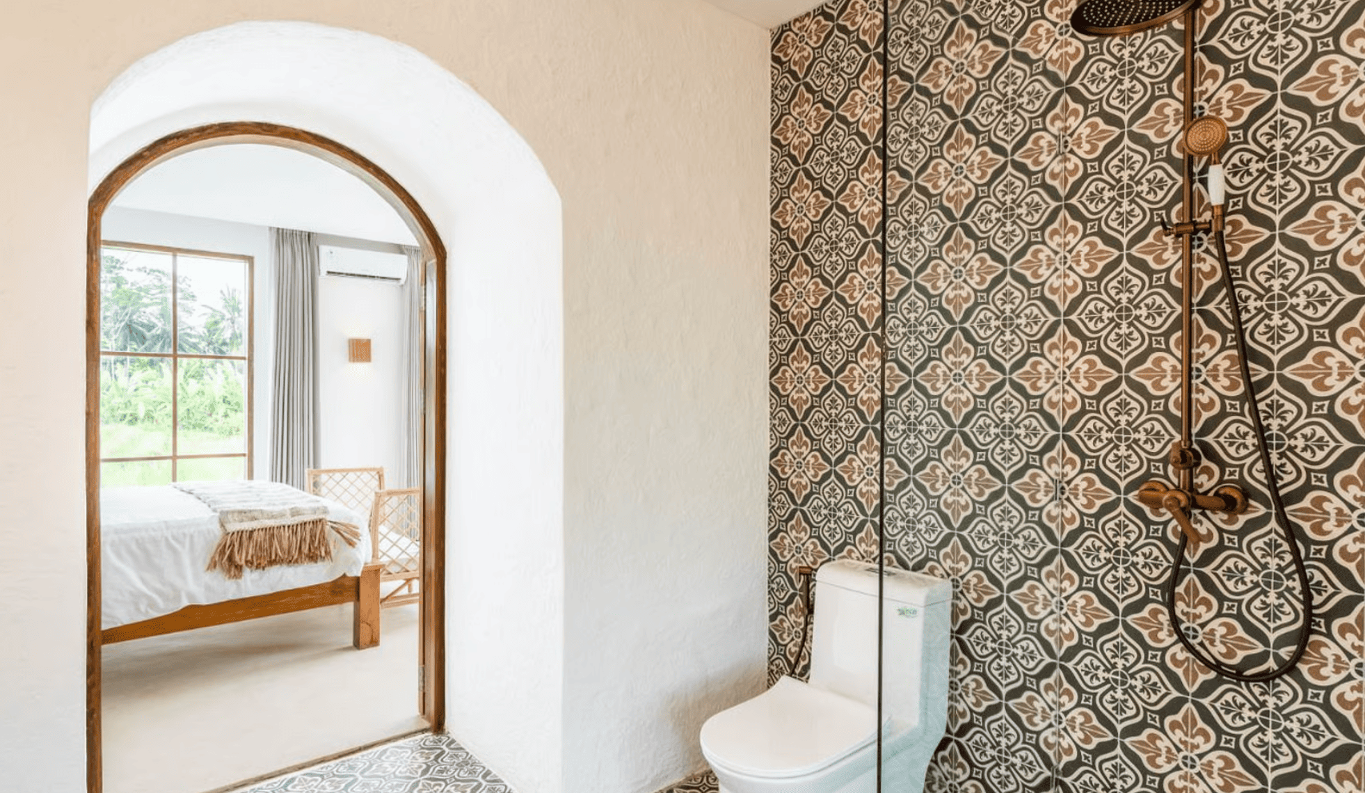 Villa Tembaga is nestled in a peaceful corner of Ubud, accessible via a narrow walkway that adds to its charm. While cars can’t reach the villa directly, it’s just a short and pleasant walk, and easily accessible by motorbike.