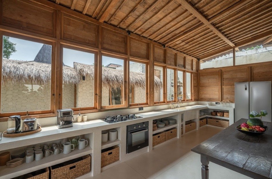 Inside, each villa features an open-plan living area and a fully equipped kitchen—perfect for preparing home-cooked meals or enjoying tropical snacks and drinks together.