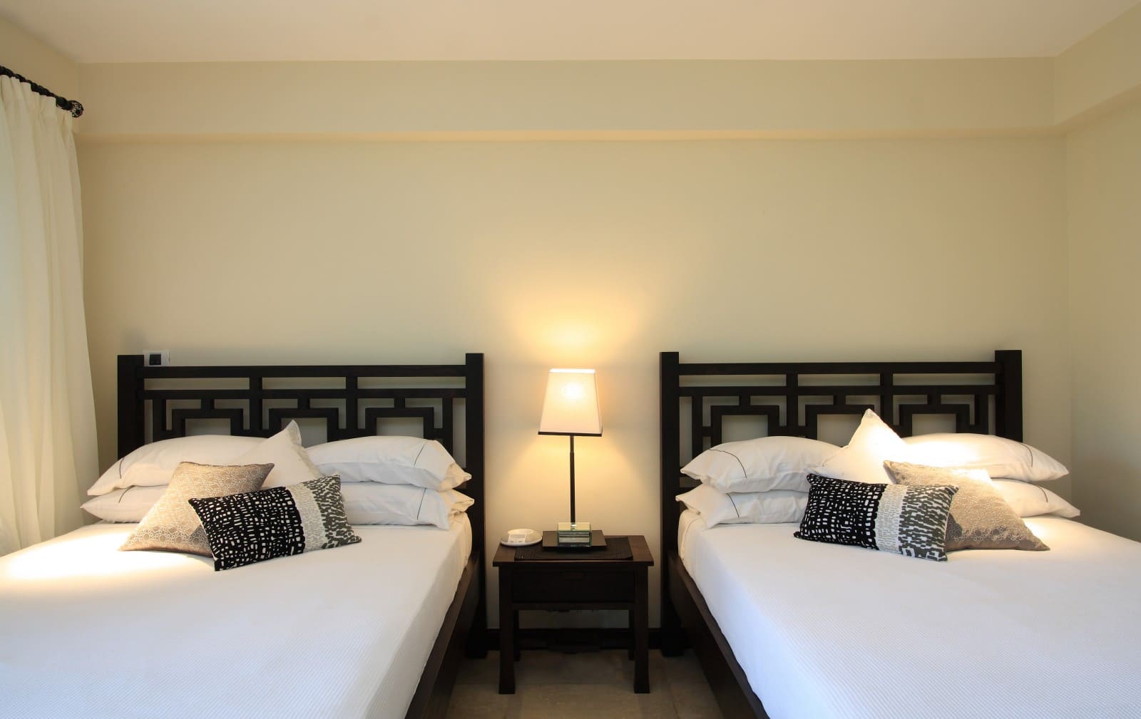 The dining table seats 8 people comfortably along with two individual leather seats positioned in the center of the room with glass top table. The living area has doors which open out to the patio and swimming pool area allowing its guests to enjoy the cool ocean breeze.