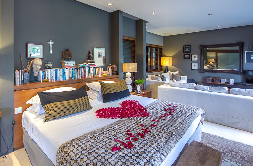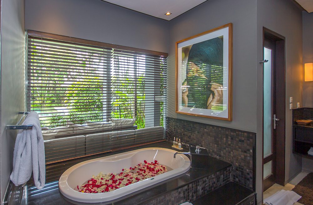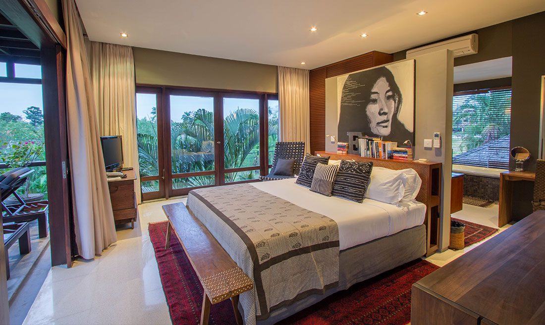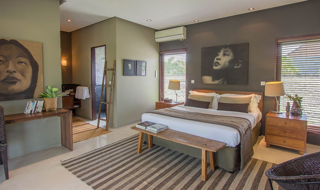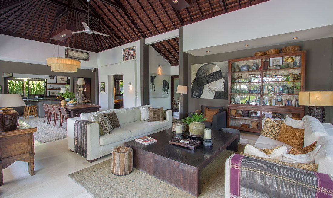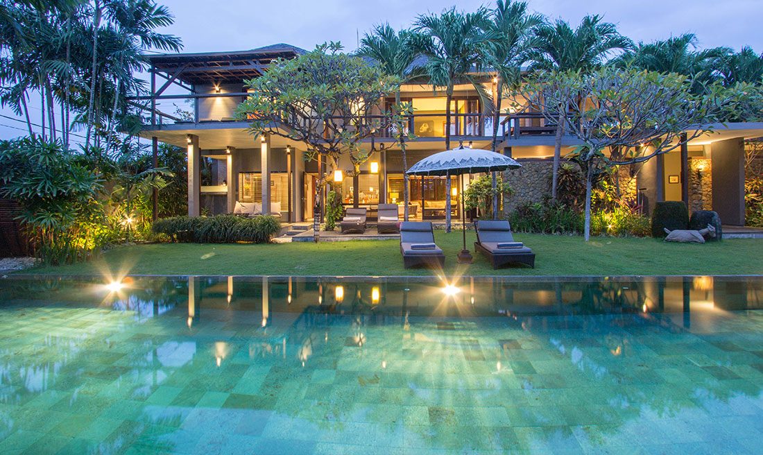 Villa Chimera Tiga is a wholesome 4-bedroom private villa, characterized by its crowd of intricate decor and luscious tropical gardens. The grand space warmly welcomes guests under its traditionally woven alang-alang thatched roof. Freshly mown grass is accompanied glistening fairy-lights of its outdoor area. The setting is complete with king-sized bedding, a lagoon-shaped private swimming pool, 24-hour wifi facilities as well as security and housekeeping services. It’s spacious alfresco living spaces allow for gatherings and BBQ garden parties. The Villa is part of a compound which in sum can host a large group of 16!