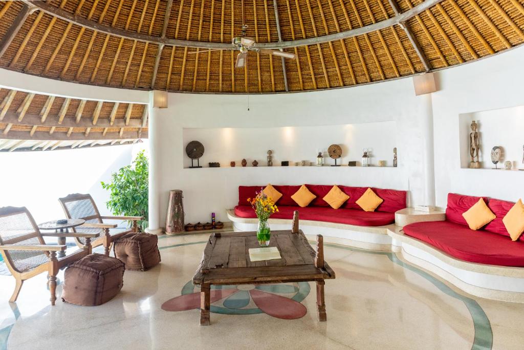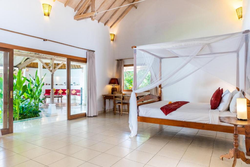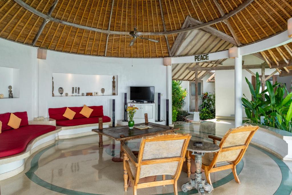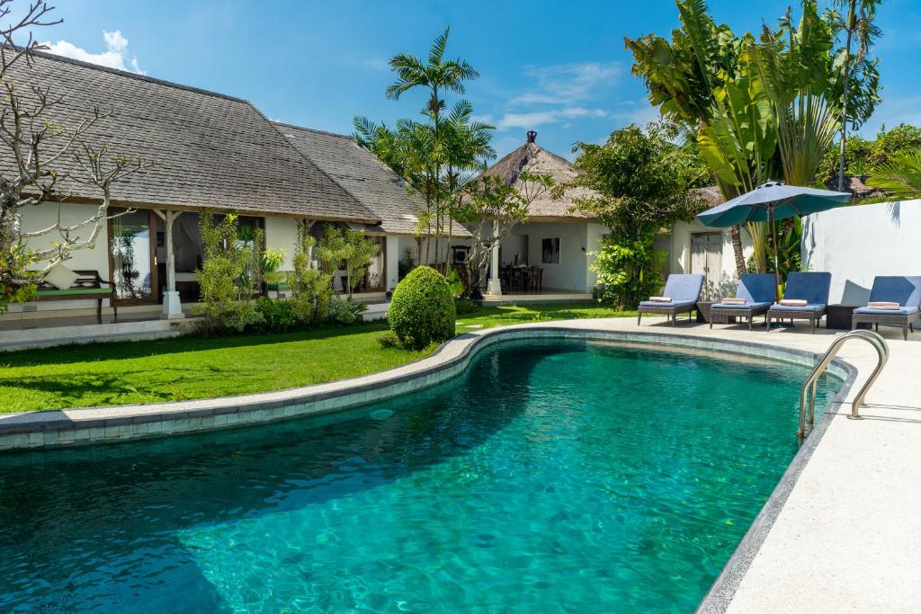 Featuring an outdoor swimming pool, garden, shared lounge, and terrace, Villa Damai Kecil Seminyak is located in the Petitenget area of Seminyak, just a 16-minute walk from Petitenget Beach. The villa offers free WiFi, a shared kitchen, and complimentary private parking. This air-conditioned villa comprises 3 bedrooms, a spacious living area, a fully equipped kitchen with a refrigerator and coffee machine, and 3 bathrooms with a shower and hairdryer. Towels and bed linens are provided for guests’ comfort. A continental breakfast is served daily at the villa.