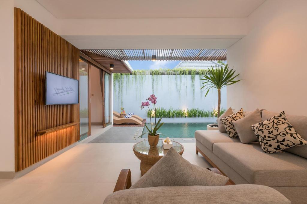 Fenosa Seminyak Villas is a villa complex consisting of three units. Every villa comes with a spacious private swimming pool, a fully equipped kitchen, a dining area, and a comfortable living room. The bathrooms are fitted with a spa-style bathtub and a separate shower.