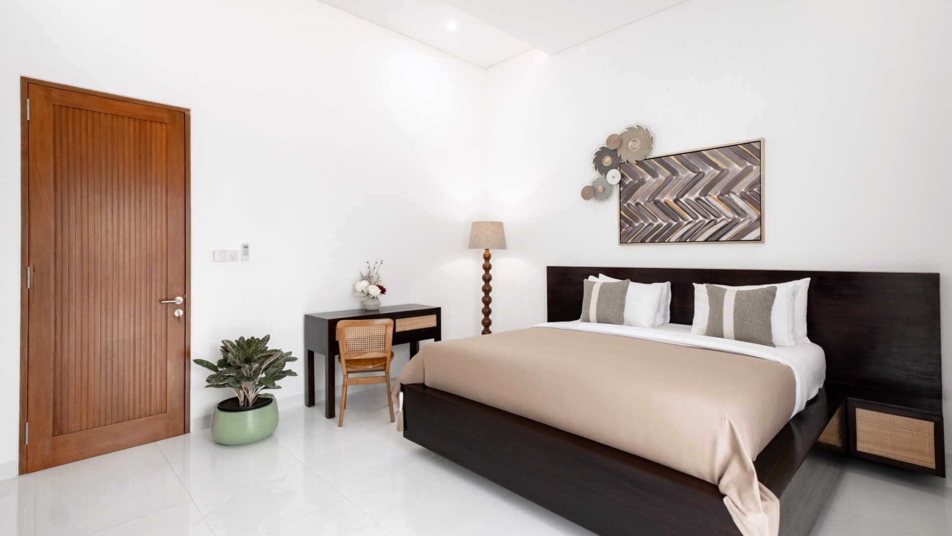 Situated in the idyllic setting of Seminyak, Villa Latima is a stunning haven of peace and tranquility. Surrounded by lush greenery, the villa’s exterior exudes an aura of modern elegance, with clean lines and a harmonious blend of white walls and warm wood accents. This seamless integration of natural elements and contemporary design creates an inviting ambiance that complements the serene environment, perfect for unwinding and escaping the hustle and bustle of everyday life.