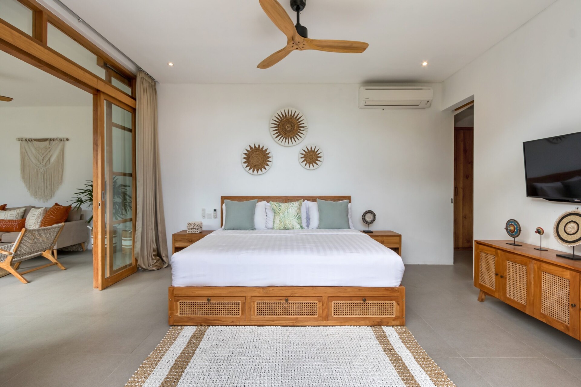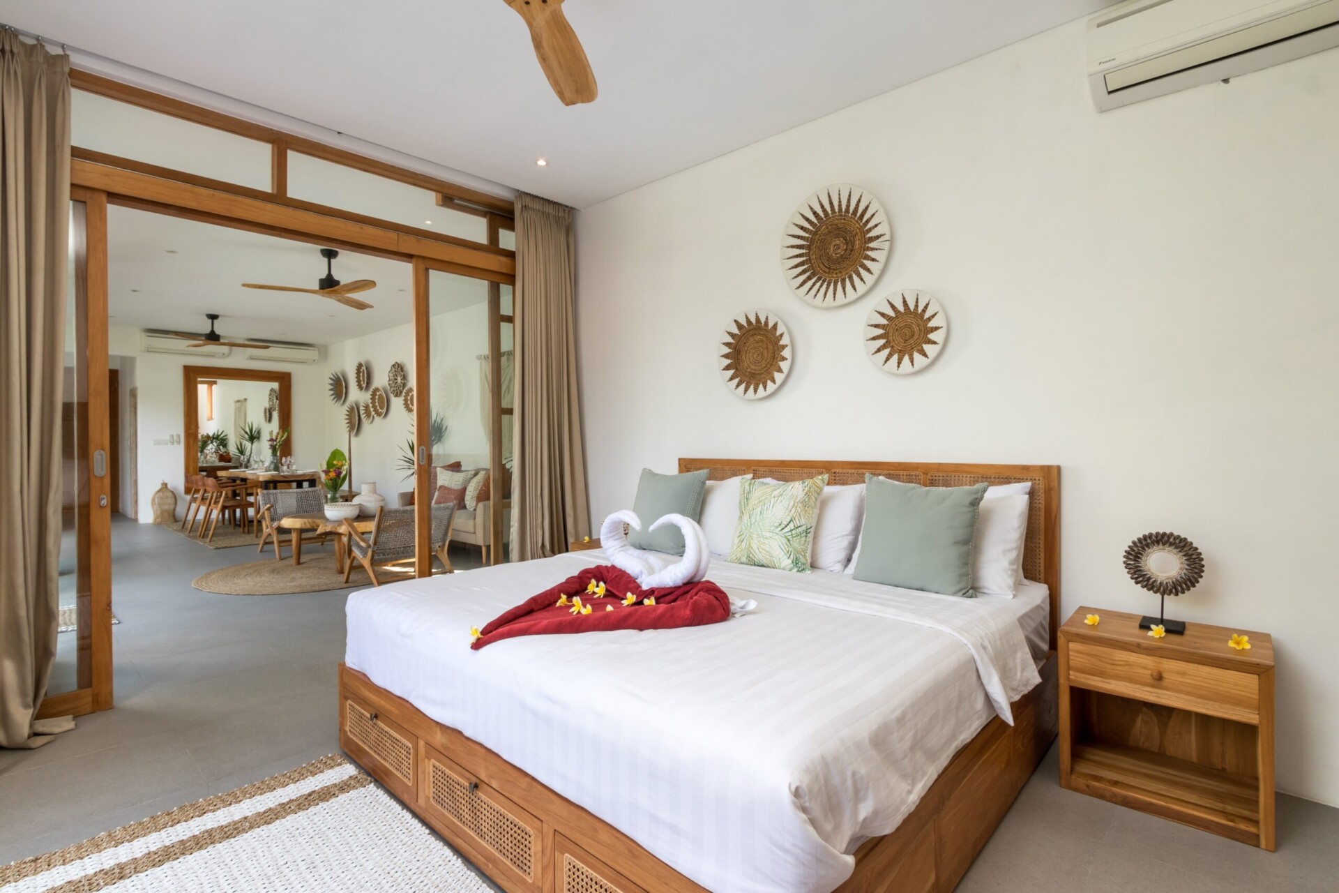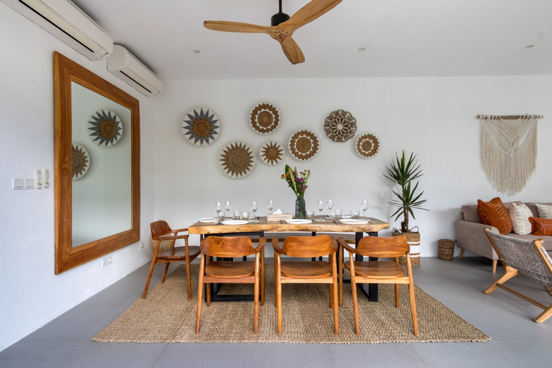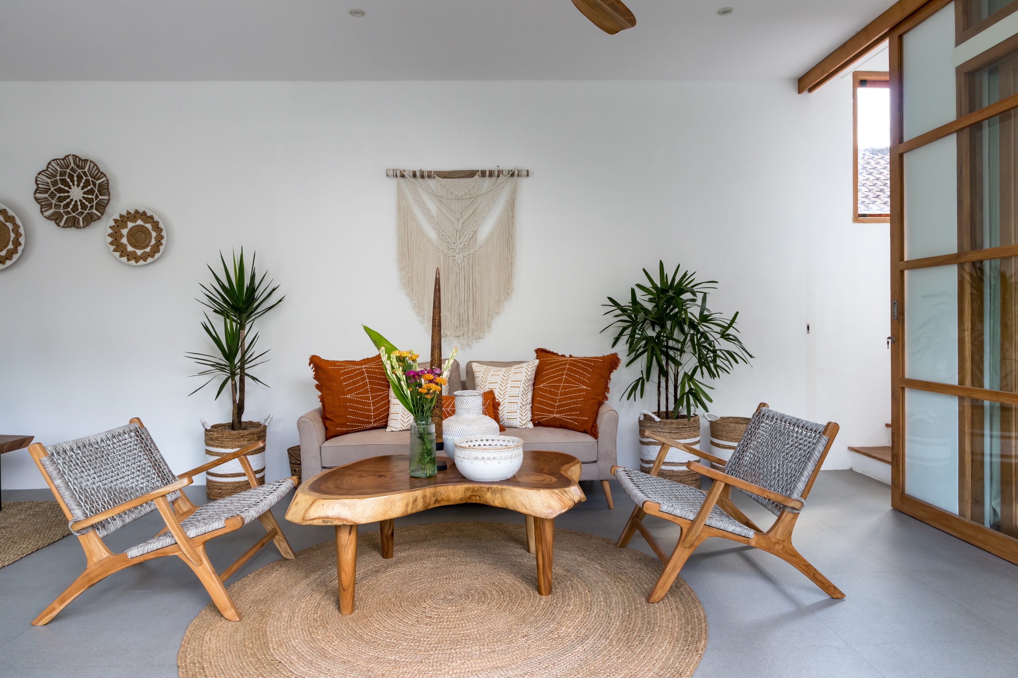 Hidden away from the crowds of Canggu, yet still close to the action, Villa Manusa is a beautiful, tropical villa with everything you need for a relaxing, memorable holiday. Featuring 4 beautiful, boho-style bedrooms, open-plan, spacious living areas and lush gardens with a private pool, the luxe villa will quickly feel like your own island home away from home.