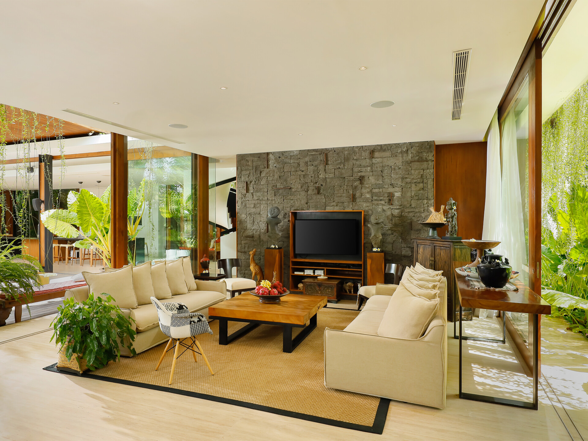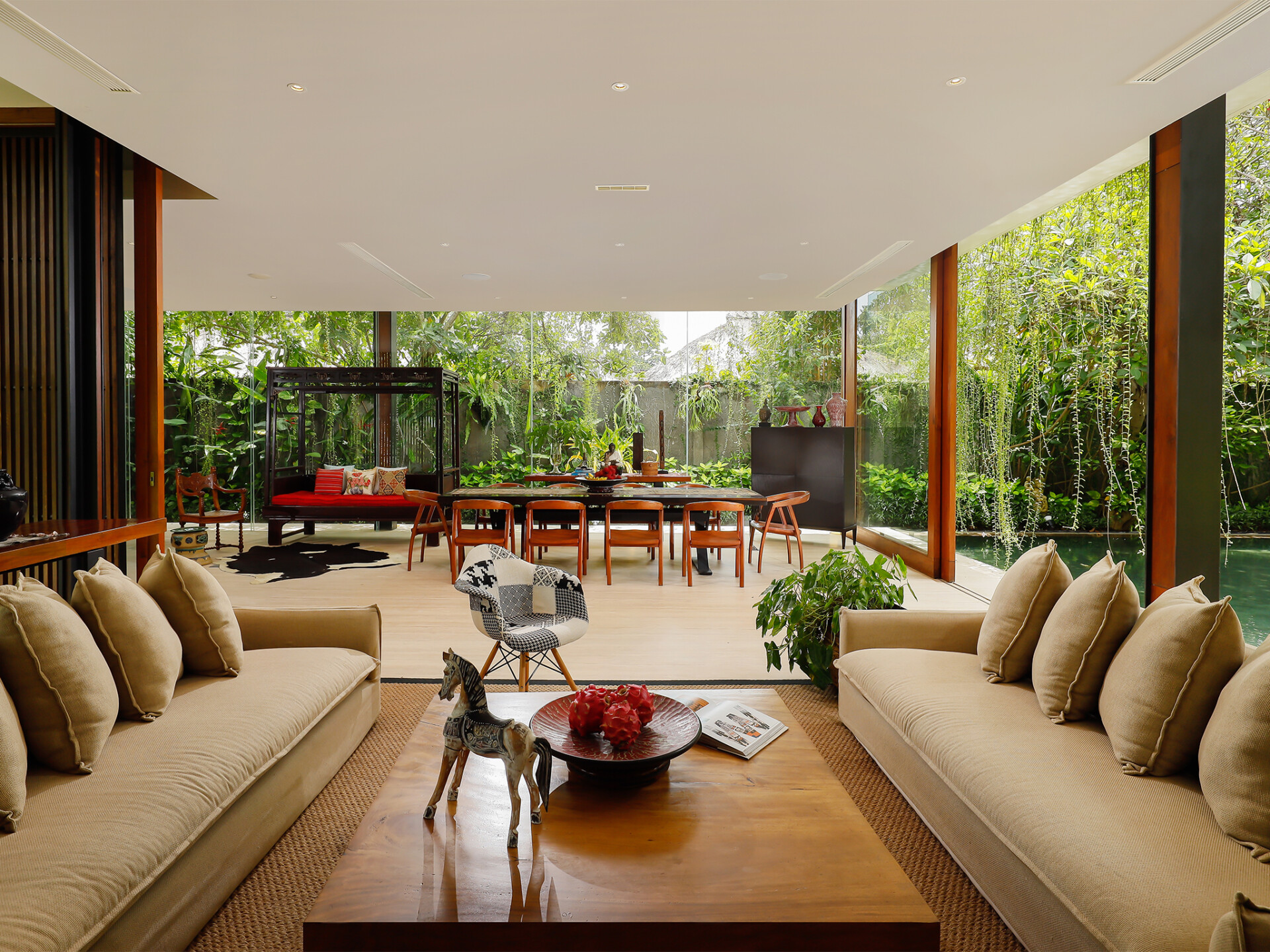 Svarga means “heaven” to the Hindus. Villa Svarga will certainly be heaven for those seeking peace, tranquility, and solitude. You will feel this from the moment you step into the estate. This 5-bedroom holiday villa in Sanur will also be a great choice for those looking for a luxury vacation in a premium location. A world of opulence awaits you. Every need and comfort of the guests is going to be looked after here. The house has a personal guest assistant, a team of housekeepers, a gardener, and security personnel. The villa manager will oversee the work and ensure that you have the best of everything. Simply can sit back, relax, and enjoy your holiday.