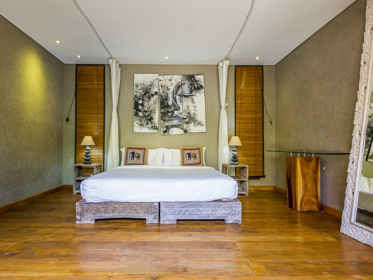 The villa has 7 bedrooms, all lavishly decorated with traditional wood furnishings and a touch of modernity with the modern art pieces. Every bedroom is air-conditioned, has its own en-suite bathroom and king size or single beds.